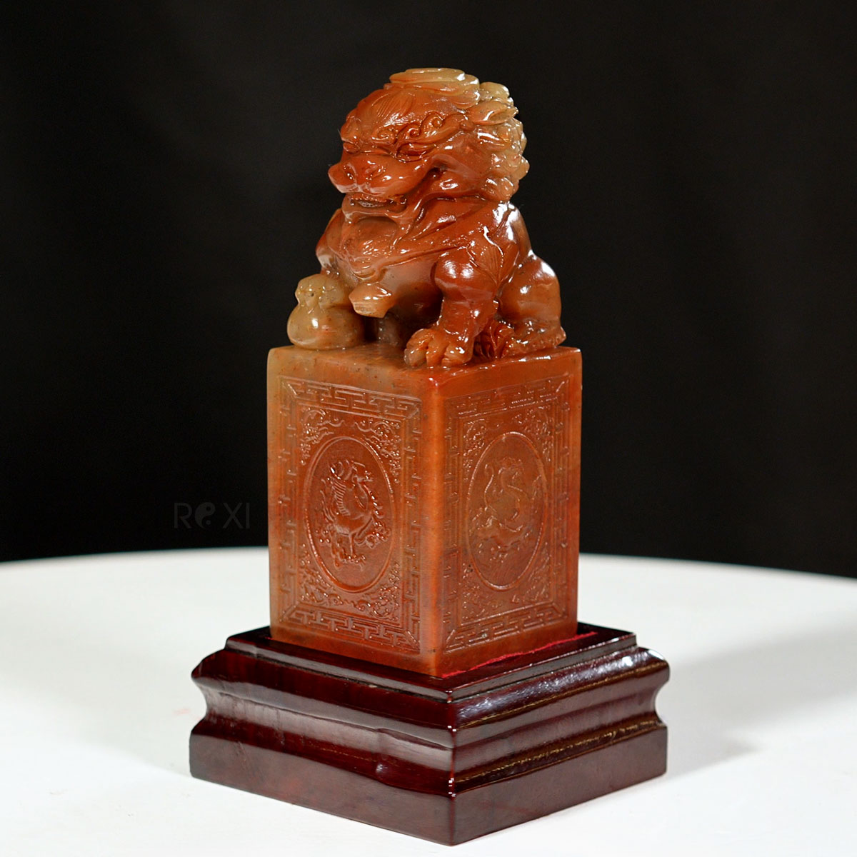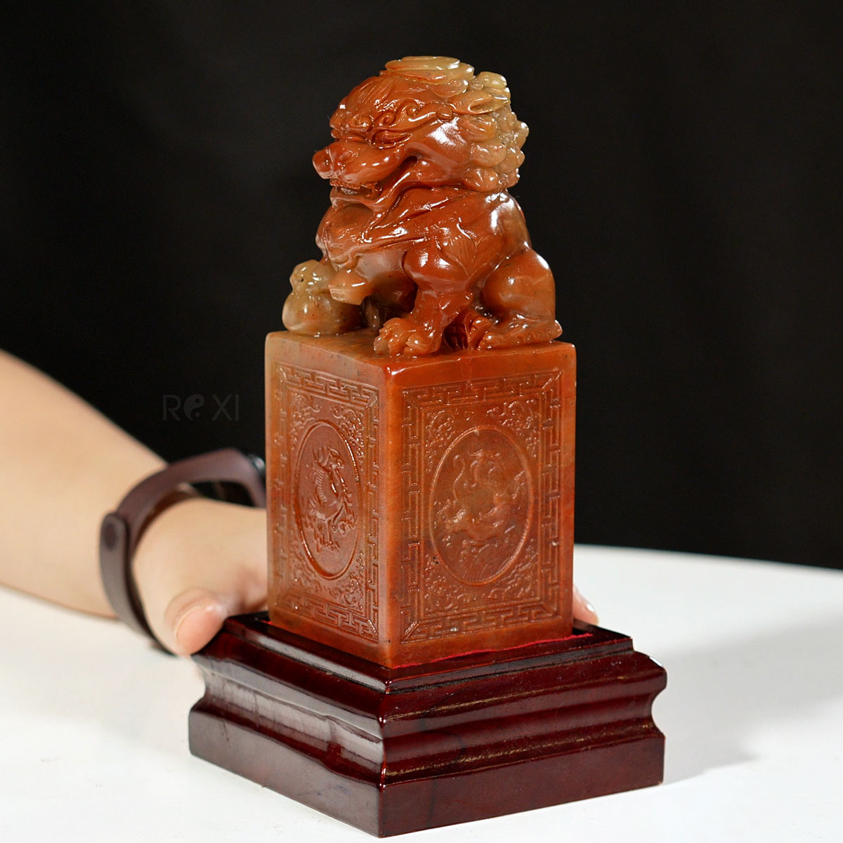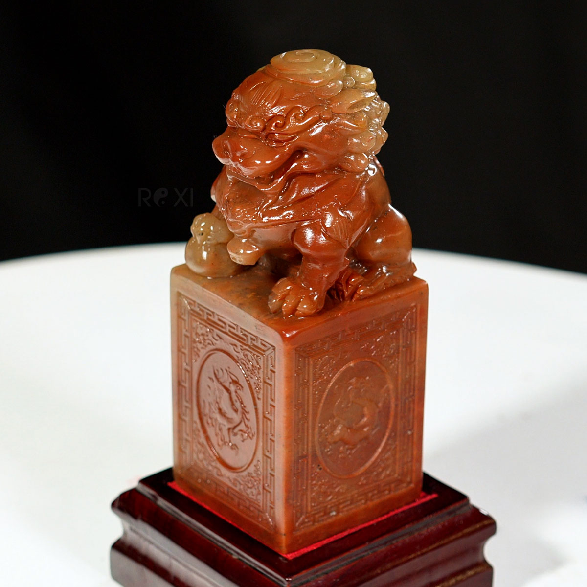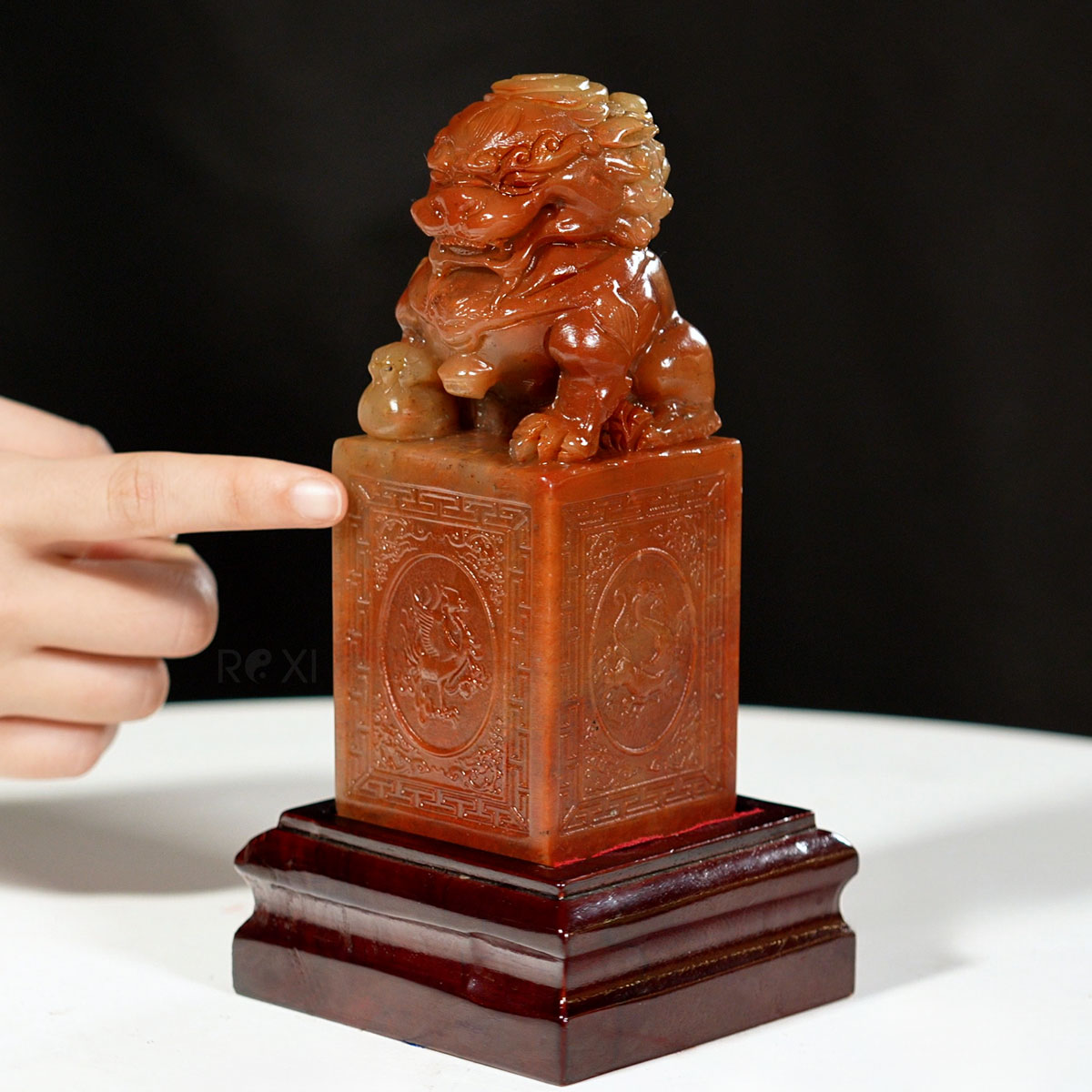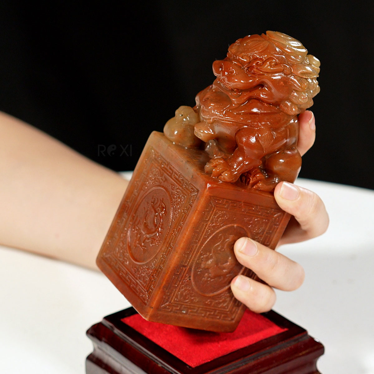 Ấn nghê phong thủy được chế tác từ ngọc thọ sơn tự nhiên.