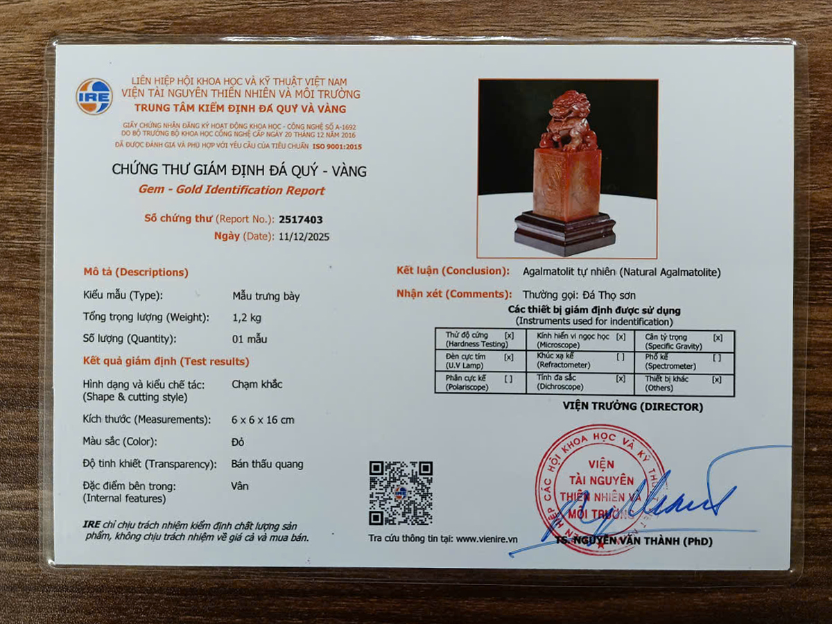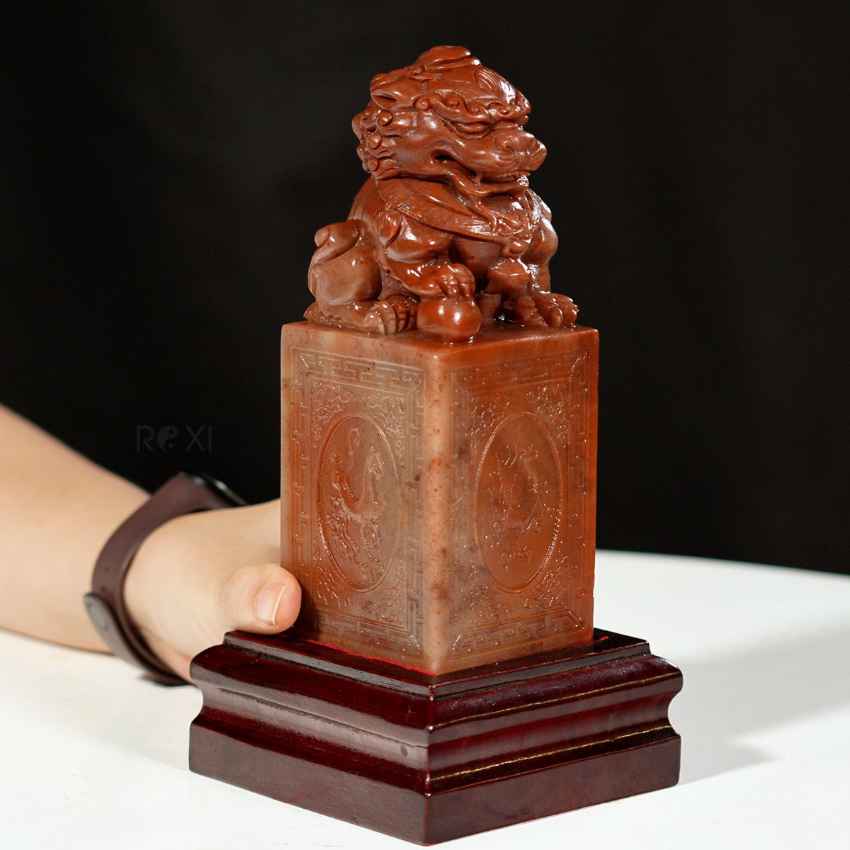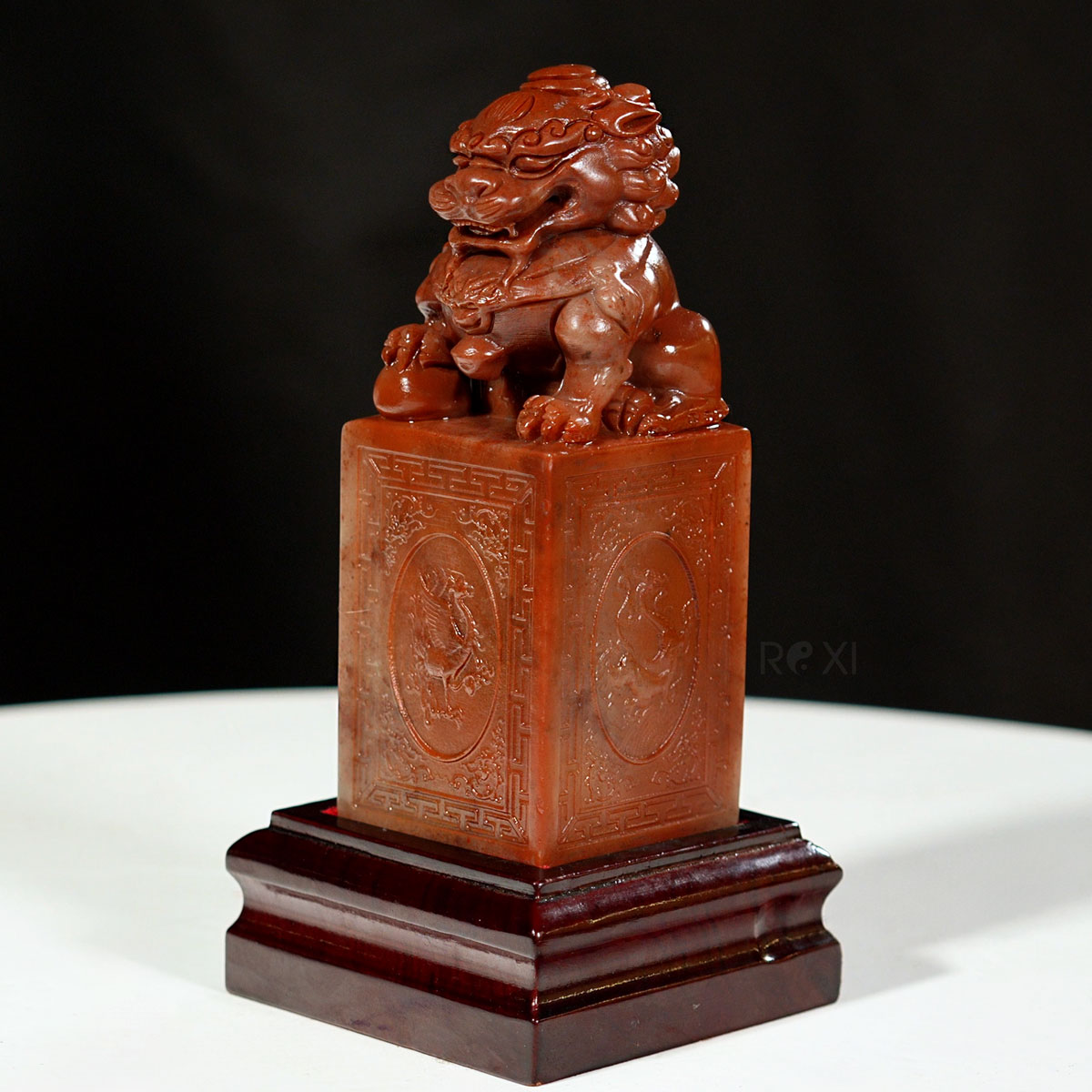Ấn nghê phong thủy được chế tác từ ngọc thọ sơn tự nhiên.