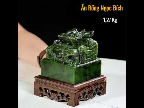 Ấn rồng ngọc bích nephrit là một tác phẩm nghệ thuật phong thủy tinh tế, được chế tác từ loại ngọc bích nephrit quý hiếm, nổi bật với màu xanh lục đặc trưng, kết hợp với các đường nét chạm khắc sắc nét tỉ mỉ tạo nên một tác phẩm đẹp và độc đáo.
