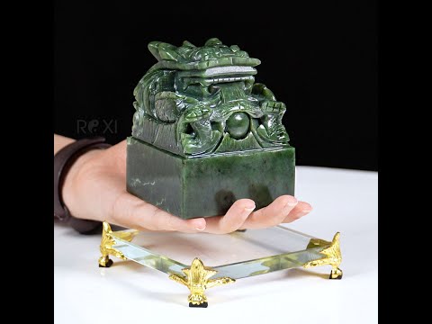 Ấn rồng ngọc bích nephrit là một tác phẩm nghệ thuật phong thủy tinh tế, được chế tác từ loại ngọc bích nephrit quý hiếm, nổi bật với màu xanh lục đặc trưng. Ấn rồng phong thủy là vật phẩm dùng để làm quà tặng sếp, quà tặng cho những người hoạt động chính trị thể hiện sự tôn trọng và mong muốn sự thành công thăng tiến đến với người được tặng.