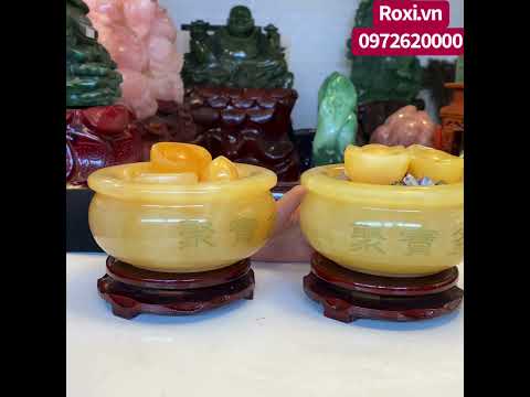 Bát tụ bảo ngọc hoàng long với hình dáng giống như chiếc bát và bên trong lòng bát chứa thạch anh, ruby và nén vàng. Bát tụ bảo được chế tác từ ngọc hoàng long tự nhiên nguyên khối với màu vàng biểu tượng của tài lộc, giàu sang và phú quý.