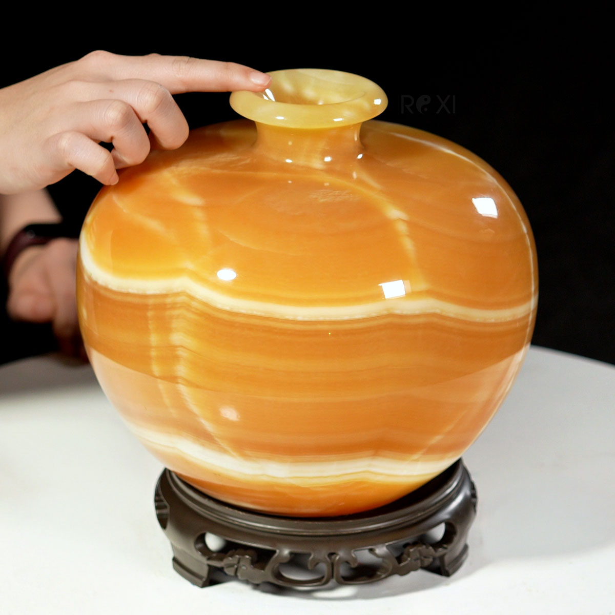 - Bộ sản phẩm gồm: 1 chiếc đế gỗ và 3 chiếc bình hút lộc được chế tác bằng ngọc tự nhiên