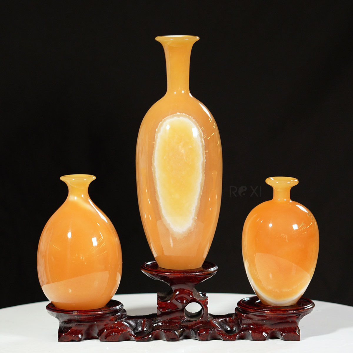 - Bộ sản phẩm gồm: 1 chiếc đế gỗ và 3 chiếc bình hút lộc được chế tác bằng ngọc tự nhiên