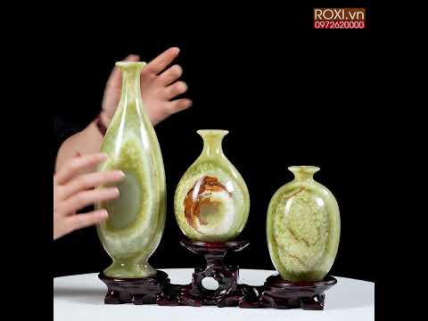 - Bộ sản phẩm gồm: 1 chiếc đế gỗ và 3 chiếc bình hút lộc được chế tác bằng ngọc tự nhiên