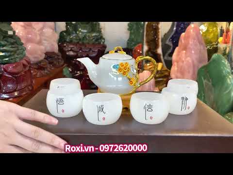 Bộ ấm trà bạch ngọc đặt phòng khách, phòng làm việc tiếp khách rất sang trọng và giá trị