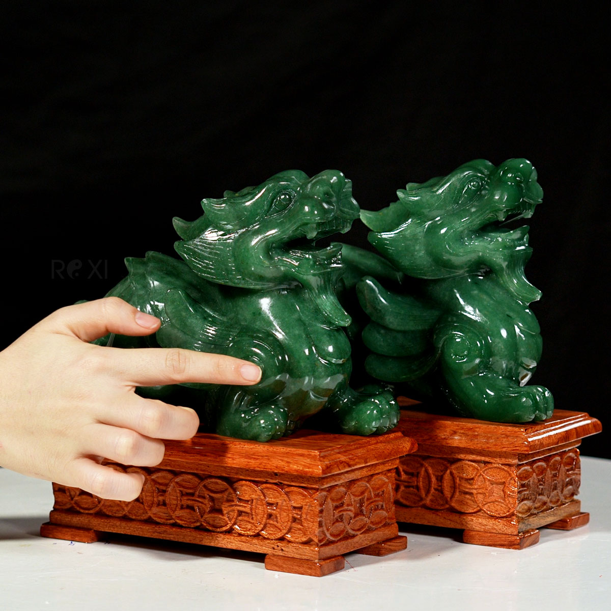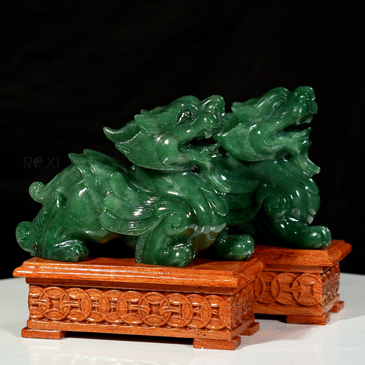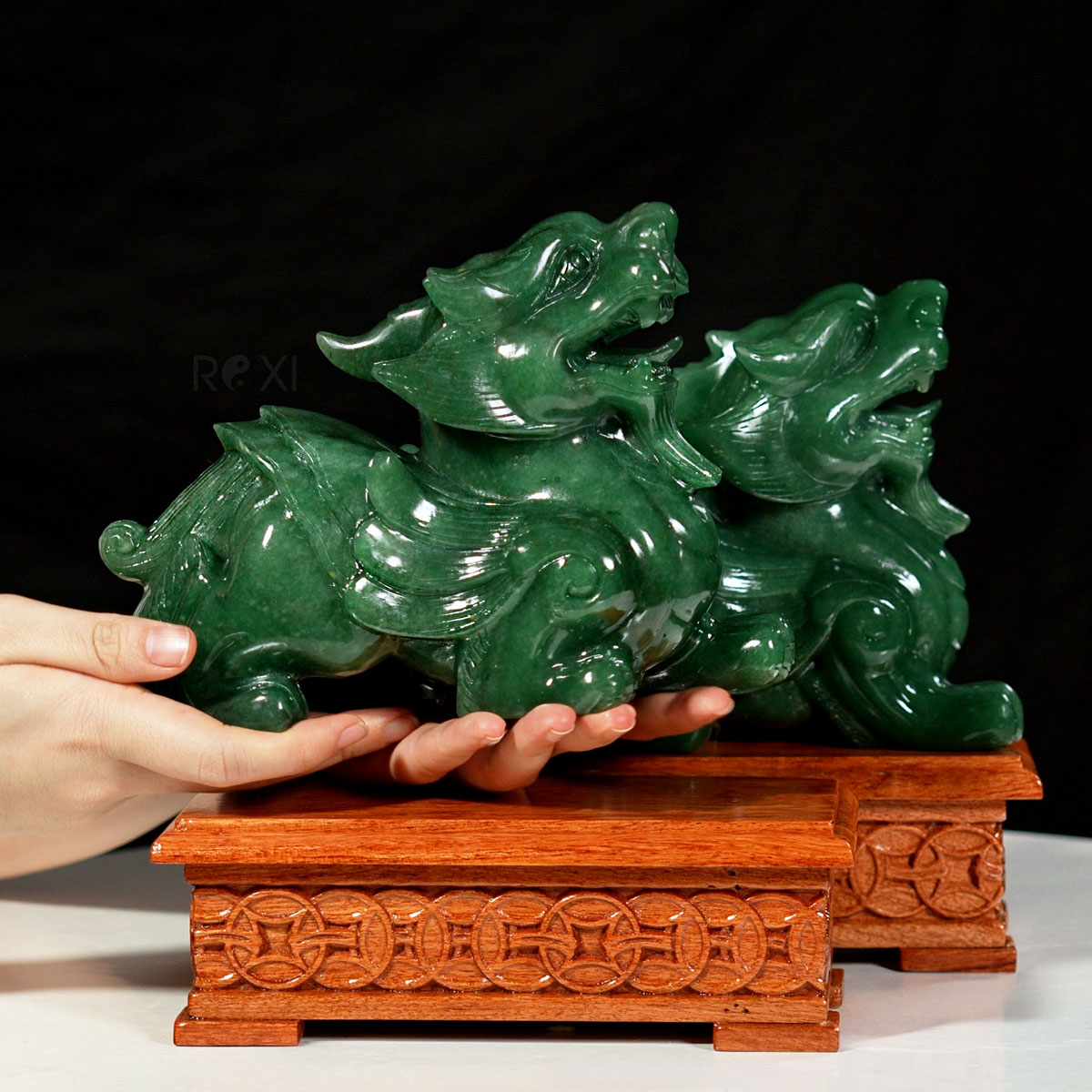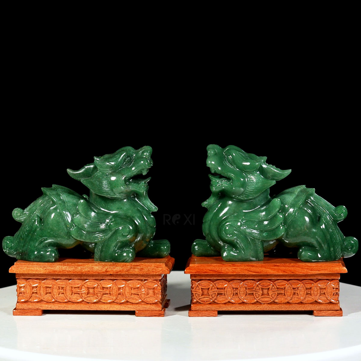 Cặp tỳ hưu thạch anh xanh được chế tác từ thạch anh xanh tự nhiên nguyên khối, đã có chứng thư kiểm định thạch anh tự nhiên.