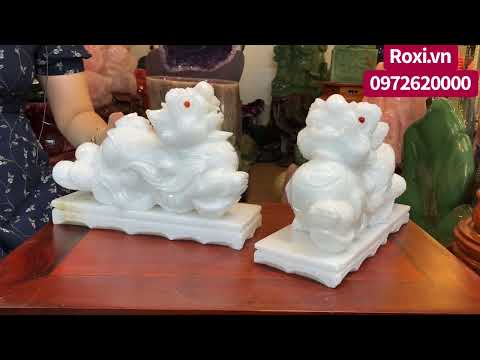 Tỳ hưu đá cẩm thạch trắng là linh vật phong thủy chiêu tài giữ lộc đồng thời có khả năng trấn giữ, xua đuổi tà khí. Tỳ hưu phong thủy được chế tác bằng đá tự nhiên, toát lên vẻ oai nghiêm và đầy sức mạnh. Cặp Tỳ hưu đá cẩm thạch trắng 30cm phù hợp cho gia chủ mệnh Thủy và mệnh Kim.