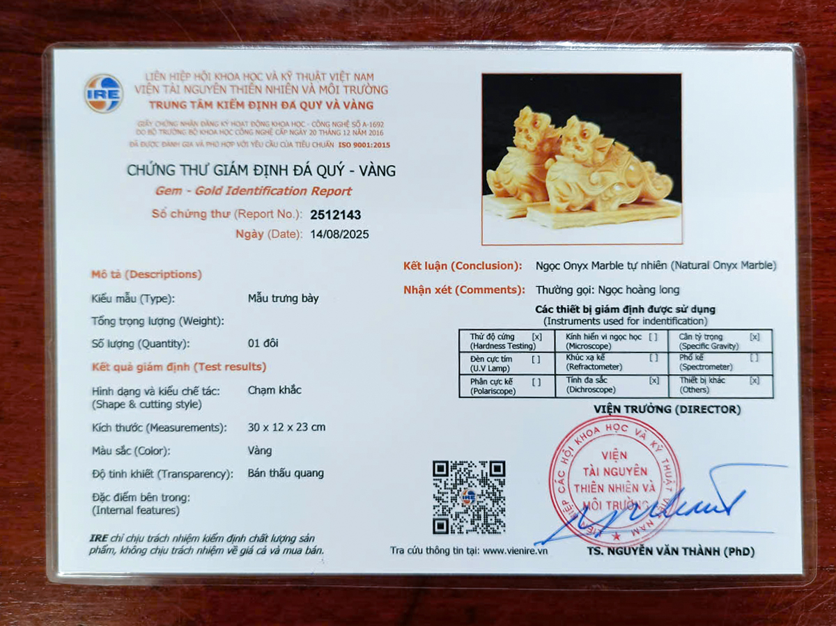Sản phẩm đã có chứng thư kiểm định ngọc tự nhiên.