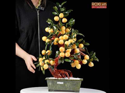 Cây đào ngọc hoàng long với những quả đào mang màu vàng rực rỡ được chế tác từ ngọc hoàng long tự nhiên, lá và chậu được chế tác từ ngọc serpentine. Mỗi chi tiết trên cây đều được chế tác tỉ mỉ bởi các nghệ nhân lành nghề, mang đến vẻ đẹp đầy sức sống.