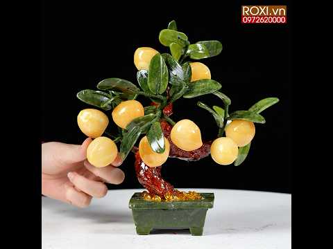 Cây đào ngọc hoàng long với những quả đào mang màu vàng rực rỡ được chế tác từ ngọc hoàng long tự nhiên, lá và chậu được chế tác từ ngọc serpentine. Mỗi chi tiết trên cây đều được chế tác tỉ mỉ bởi các nghệ nhân lành nghề, mang đến vẻ đẹp đầy sức sống.