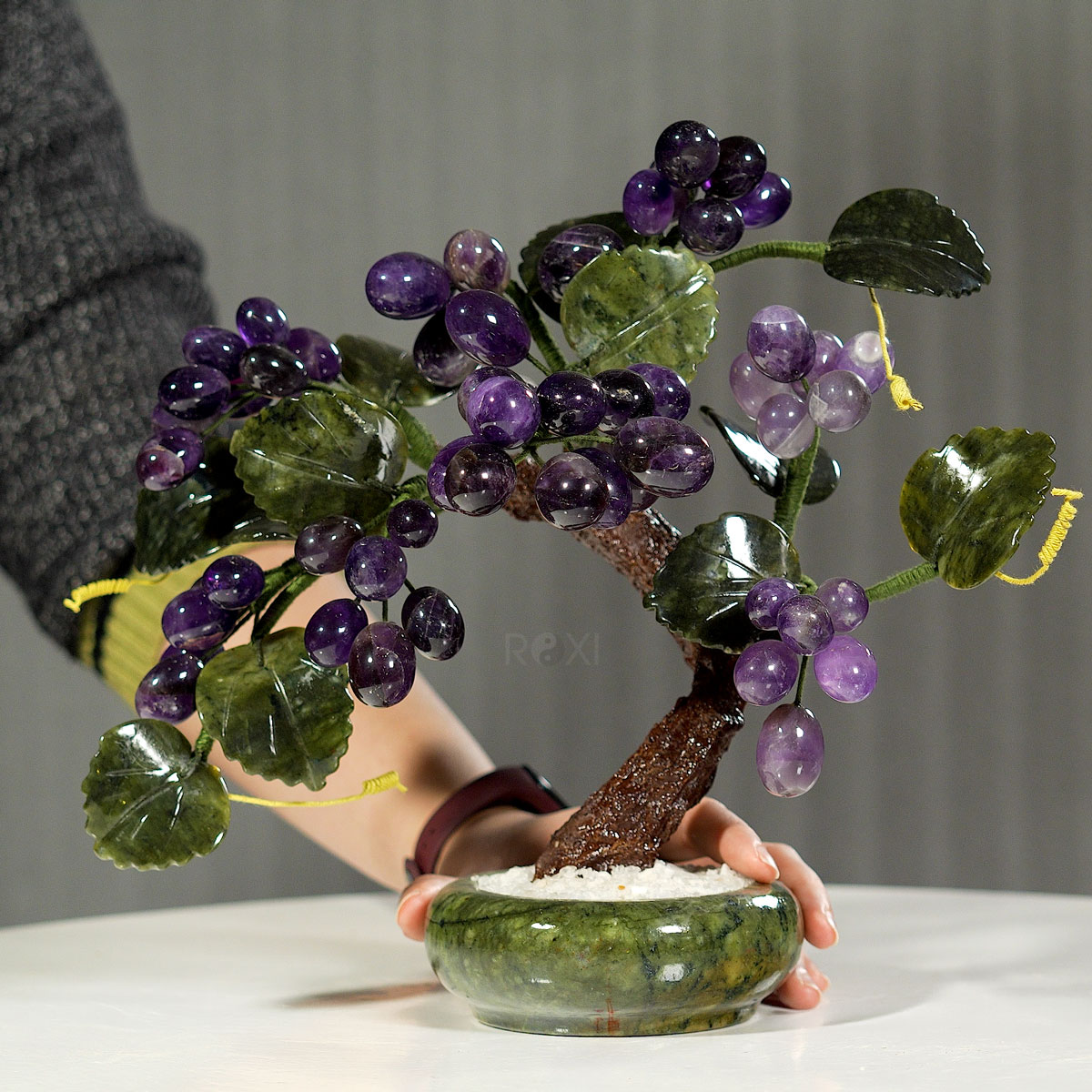 Sự tinh xảo trong từng chi tiết tạo nên tác phẩm cây nho thạch anh thành một sản phẩm phong thủy đẹp, vừa có giá trị trang trí, vừa mang ý nghĩa may mắn.