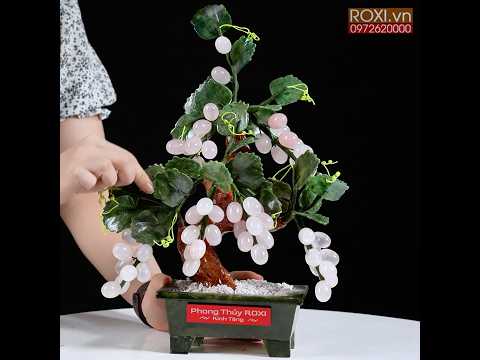Cây nho thạch anh là sự kết hợp hài hòa giữa các loại đá quý trong tự nhiên, quả nho được chế tác từ thạch anh tự nhiên, gắn kết thành chùm, lá và chậu cây được chế tác từ ngọc serpentine mang nguồn năng lượng phong thủy mạnh mẽ.