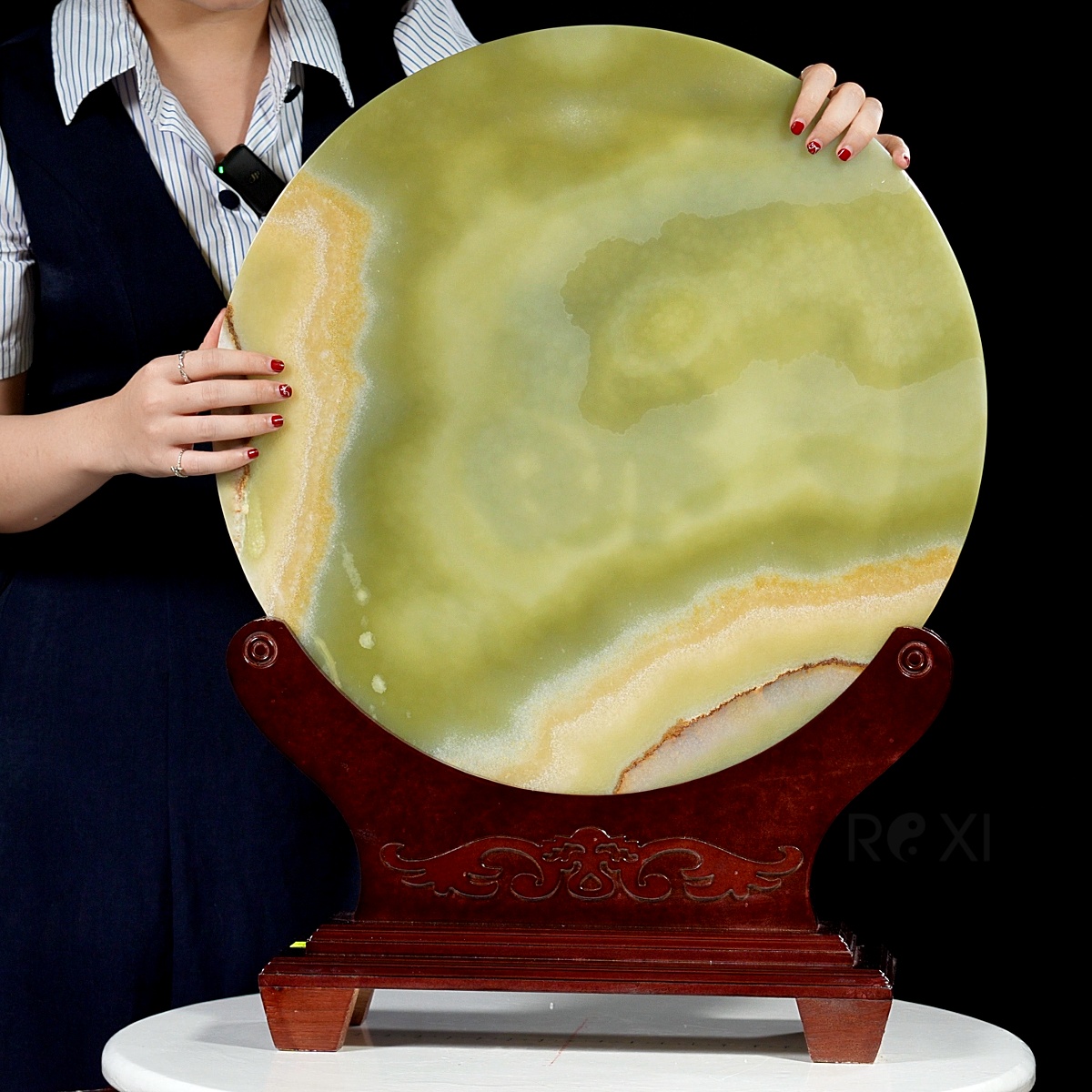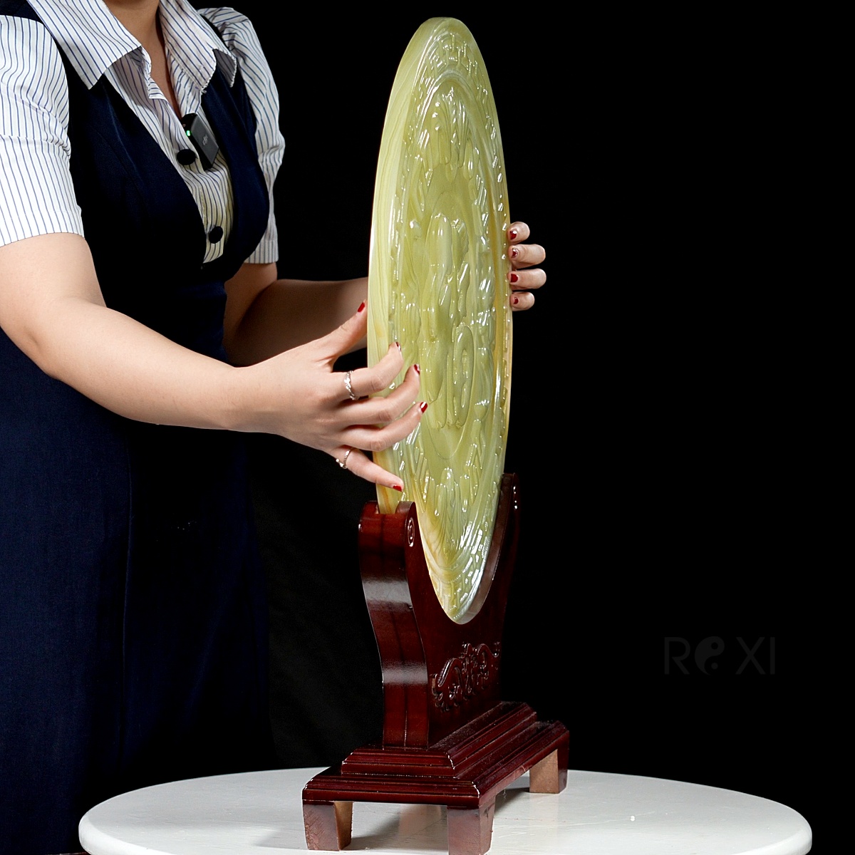 Đồng điếu ngọc được chế tác từ ngọc tự nhiên nguyên khối nổi bật với các dải vân tự nhiên trên bề mặt. Mỗi đường vân là một tuyệt tác của thiên nhiên, uốn lượn mềm mại, tạo nên sự cân đối hài hòa đẹp như một bức tranh.