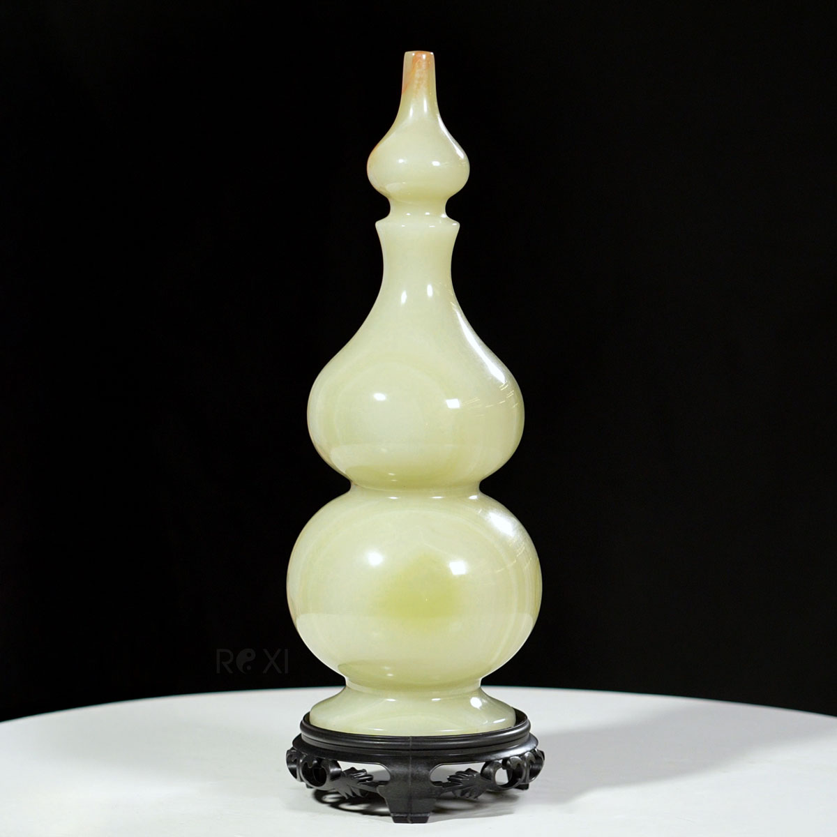 Hồ lô phong thủy bằng ngọc tự nhiên với hình dáng tròn đầy của chiếc bầu tròn là biểu trưng cho phúc lộc tròn đầy, tài phúc thăng tiến, hạnh phúc viên mãn.