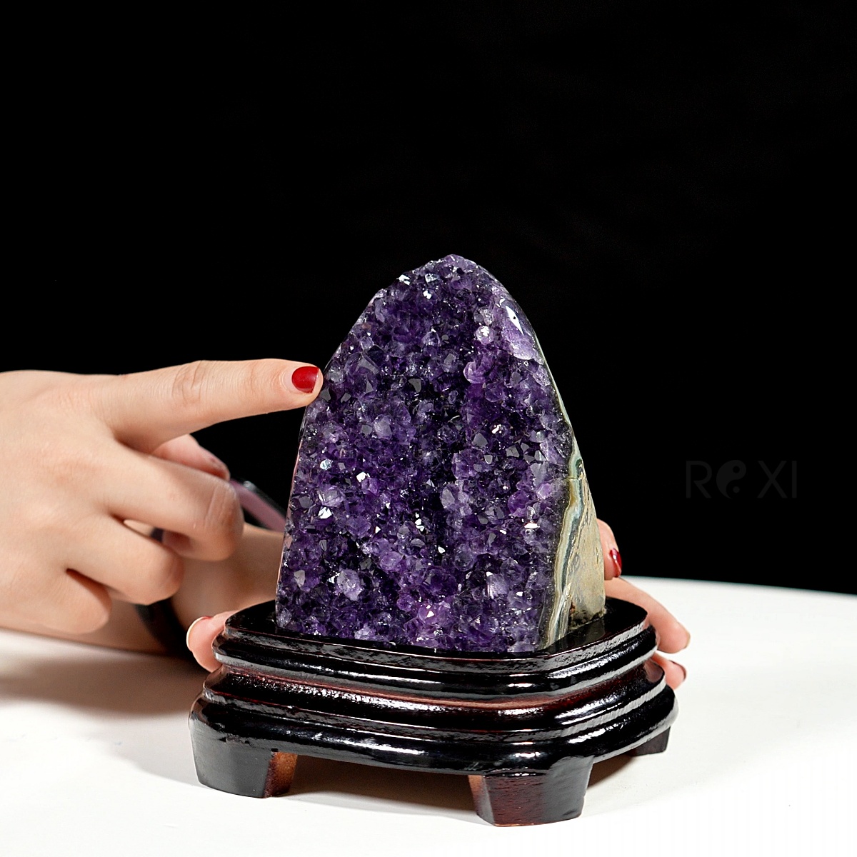 Hốc đá thạch anh tím là sự kết tinh của các tinh thể thạch anh màu tím dạng lục lăng sáng lấp lánh được bao bọc bởi lớp đá bên ngoài.