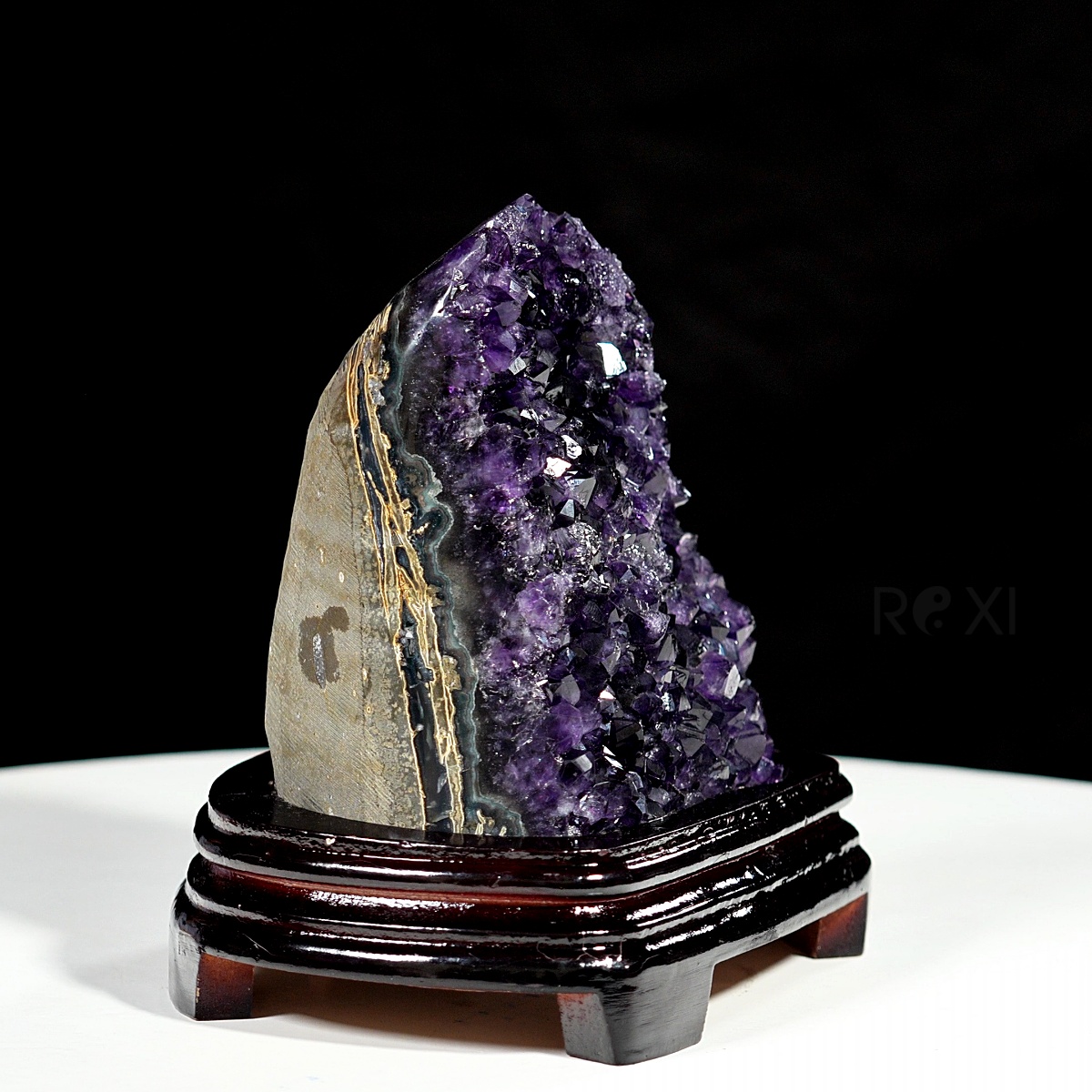 Hốc đá thạch anh tím là sự kết tinh của các tinh thể thạch anh màu tím dạng lục lăng sáng lấp lánh được bao bọc bởi lớp đá bên ngoài.