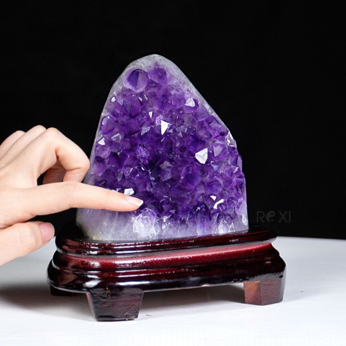 Hốc đá thạch anh tím là sự kết tinh của các tinh thể thạch anh màu tím dạng lục lăng sáng lấp lánh được bao bọc bởi lớp đá bên ngoài.