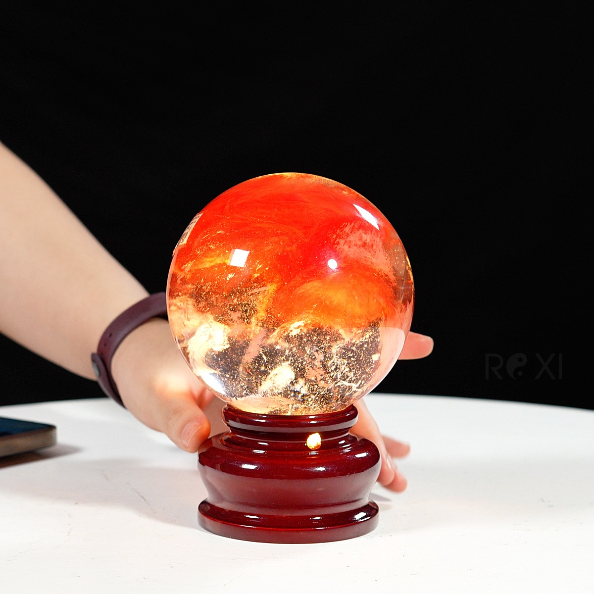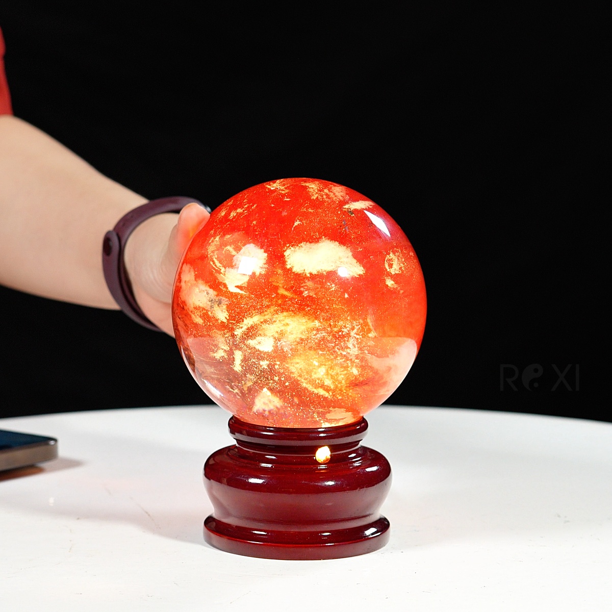 Quả cầu đá phong thủy đỏ mang màu đỏ rực lửa, màu của nhiệt huyết, trí tuệ và may mắn, vừa có tác dụng phong thủy to lớn, vừa là vật phẩm trang trí decor nội thất sang trọng và nổi bật.
