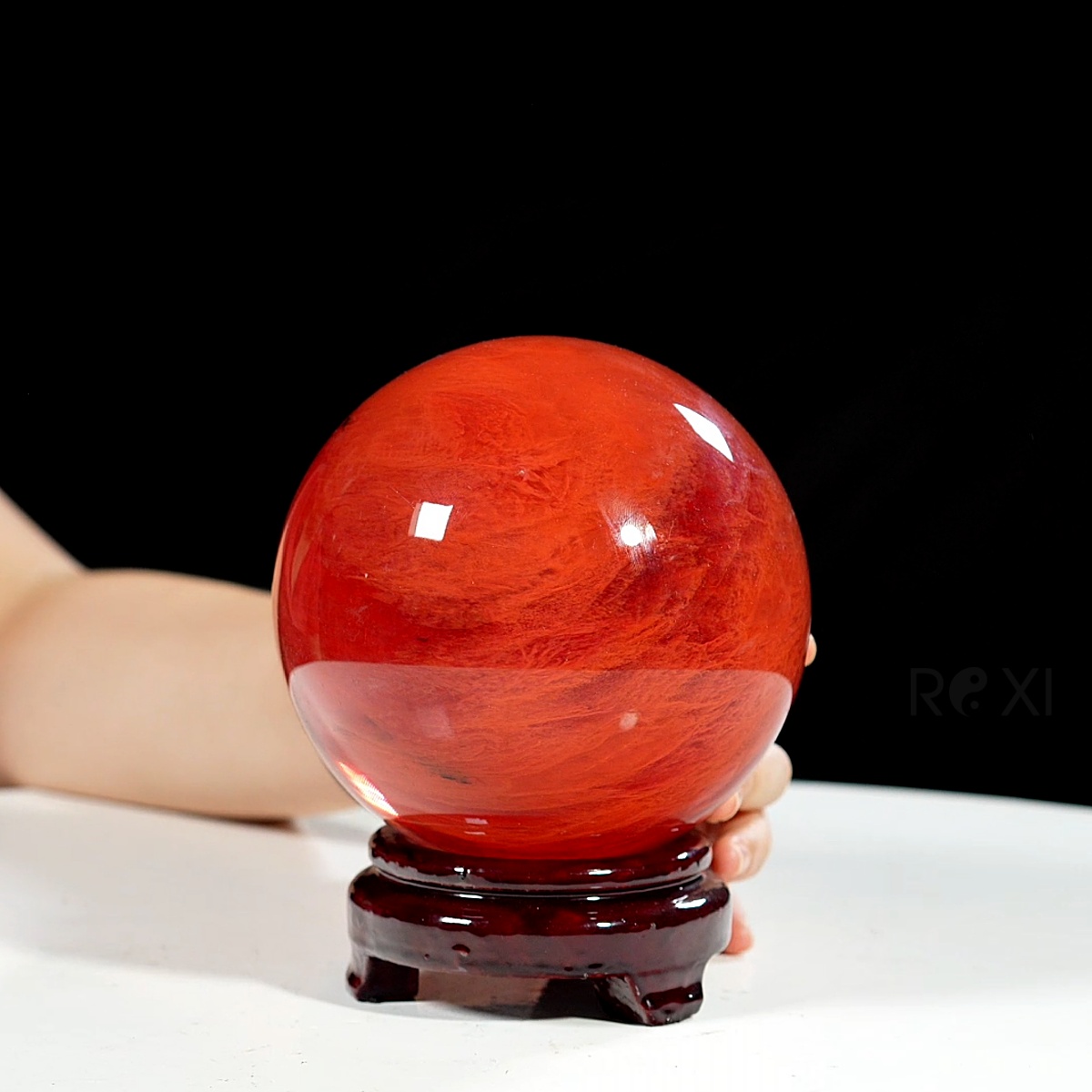 Quả cầu đá phong thủy đỏ mang màu đỏ rực lửa, màu của nhiệt huyết, trí tuệ và may mắn, vừa có tác dụng phong thủy to lớn, vừa là vật phẩm trang trí decor nội thất sang trọng và nổi bật.