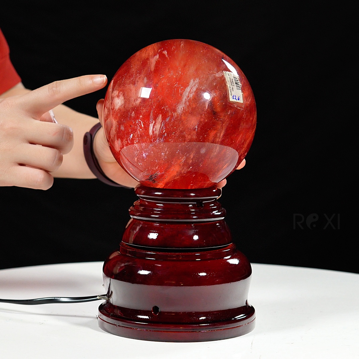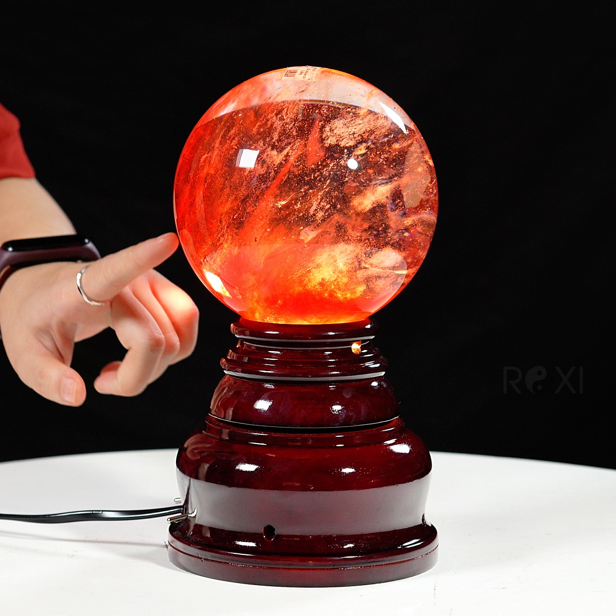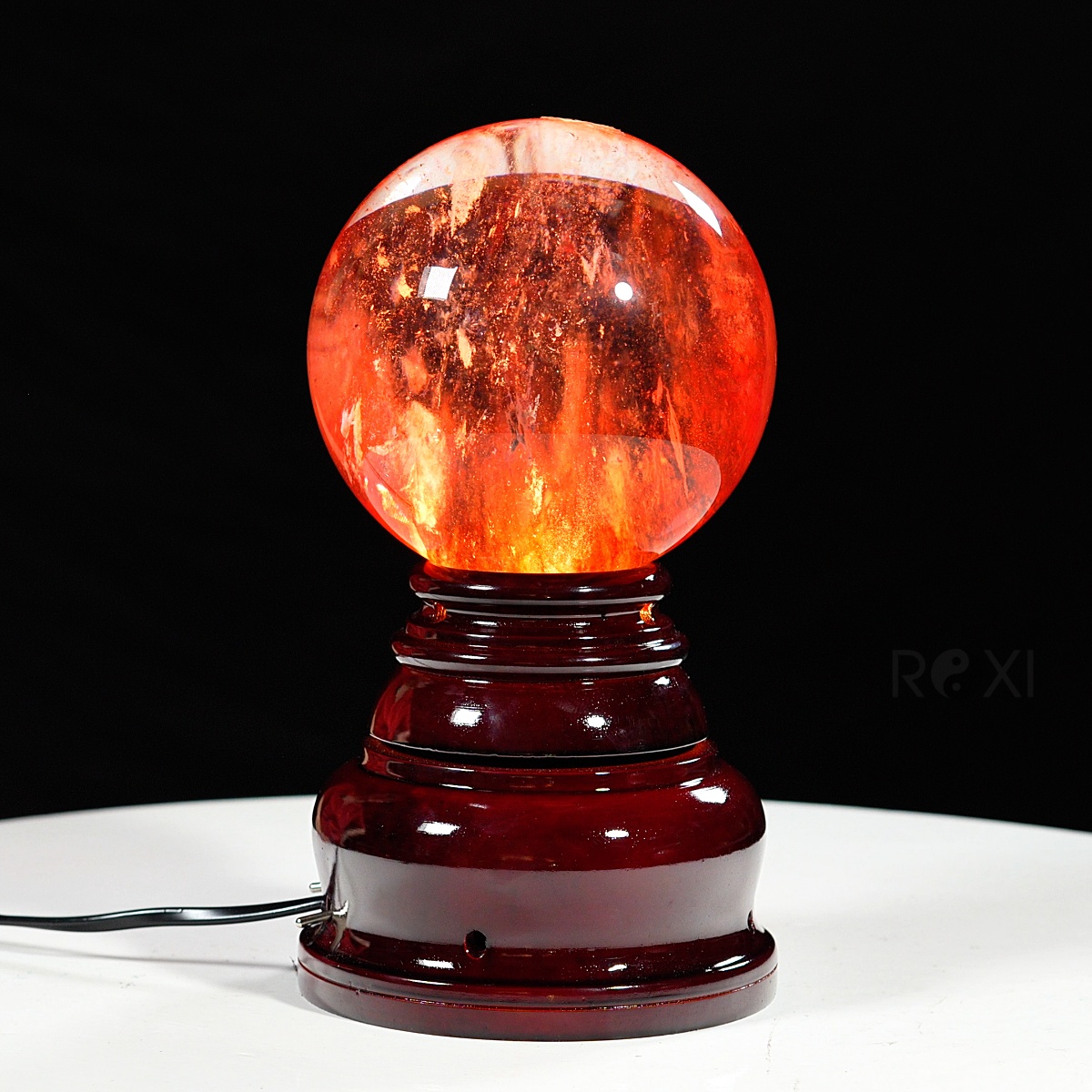 Quả cầu đá obsidian đỏ 2,28kg - 12,6cm + đế đèn xoay