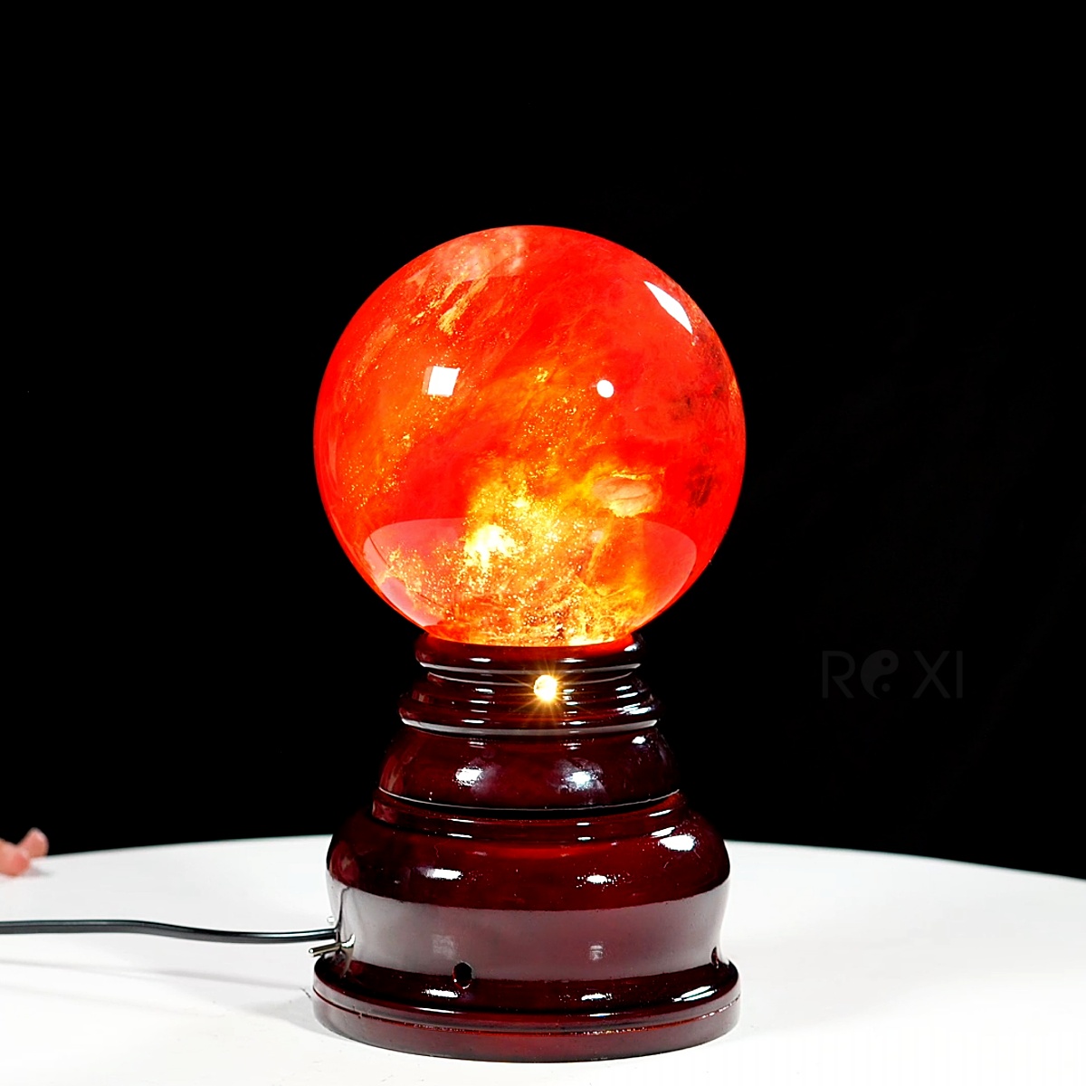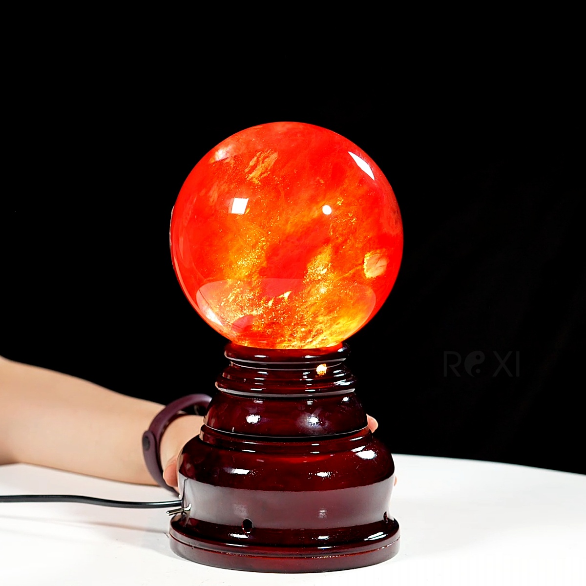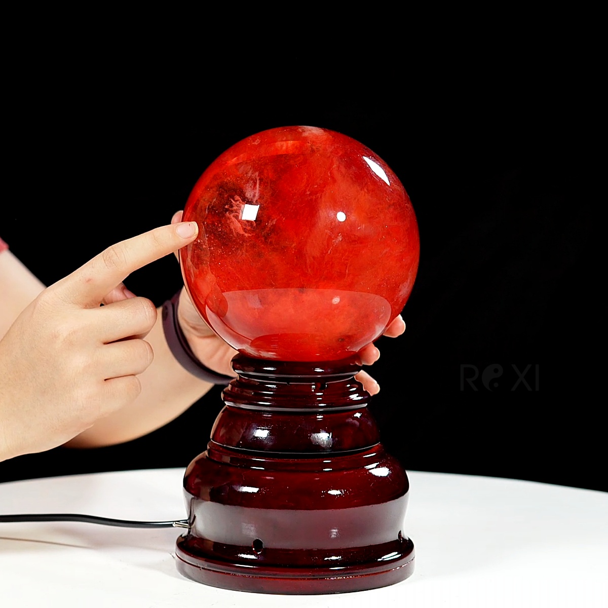 Quả cầu đá obsidian đỏ 2,5kg - 13cm + đế đèn xoay