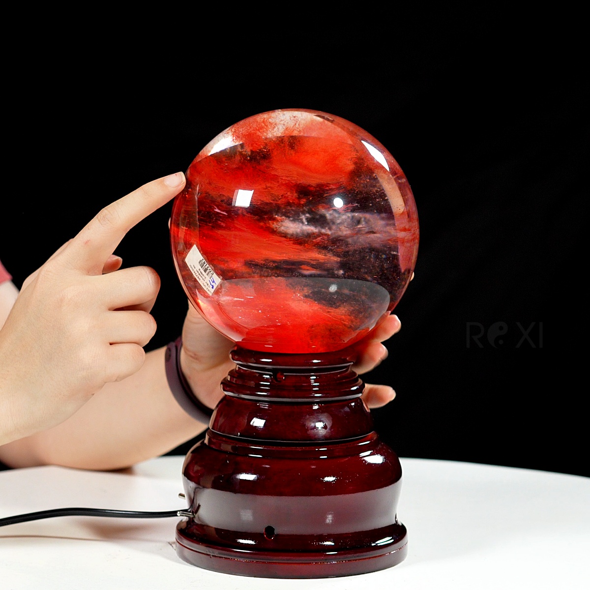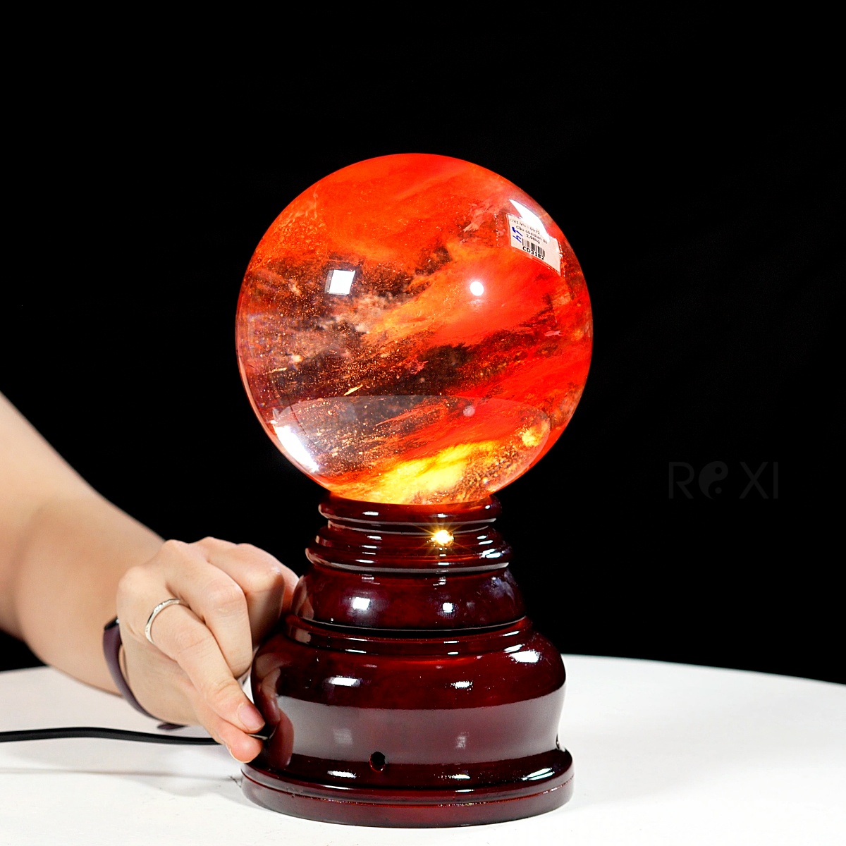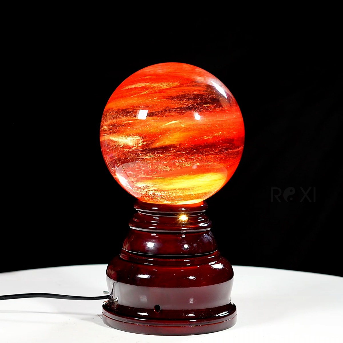 Quả cầu đá obsidian đỏ 2,98kg - 14cm + đế đèn xoay