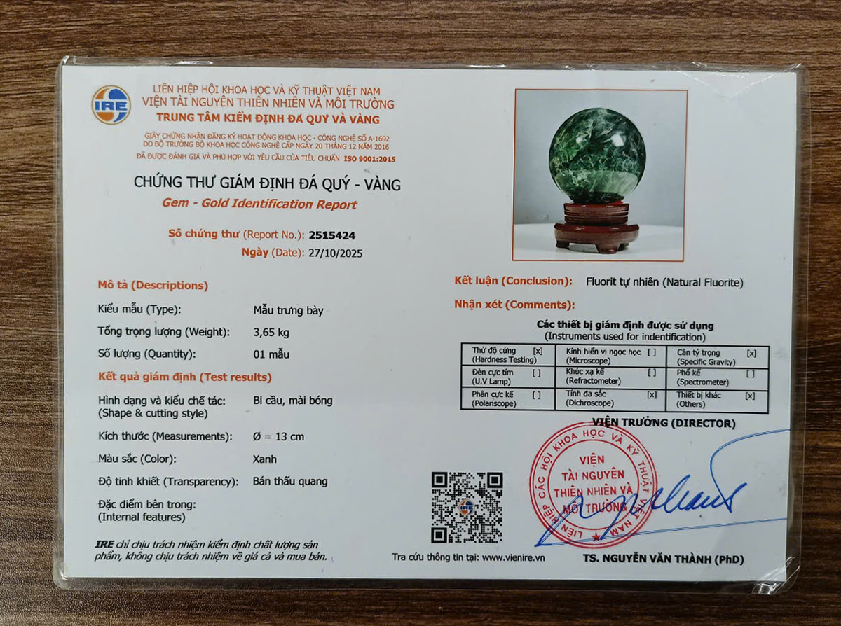 Quả cầu fluorit xanh 3,65kg - 13cm