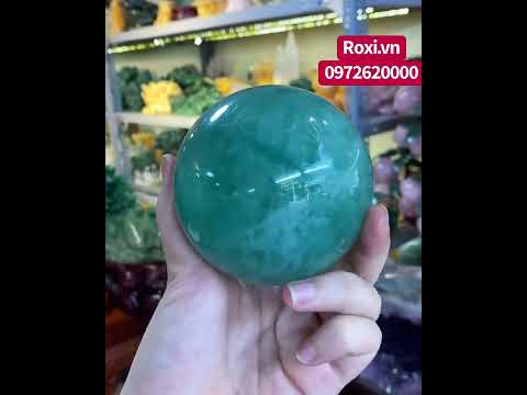 - Quả cầu đá fluorit màu xanh ngọc, được chế tác từ đá tự nhiên nguyên khối, bao kiểm định toàn quốc.