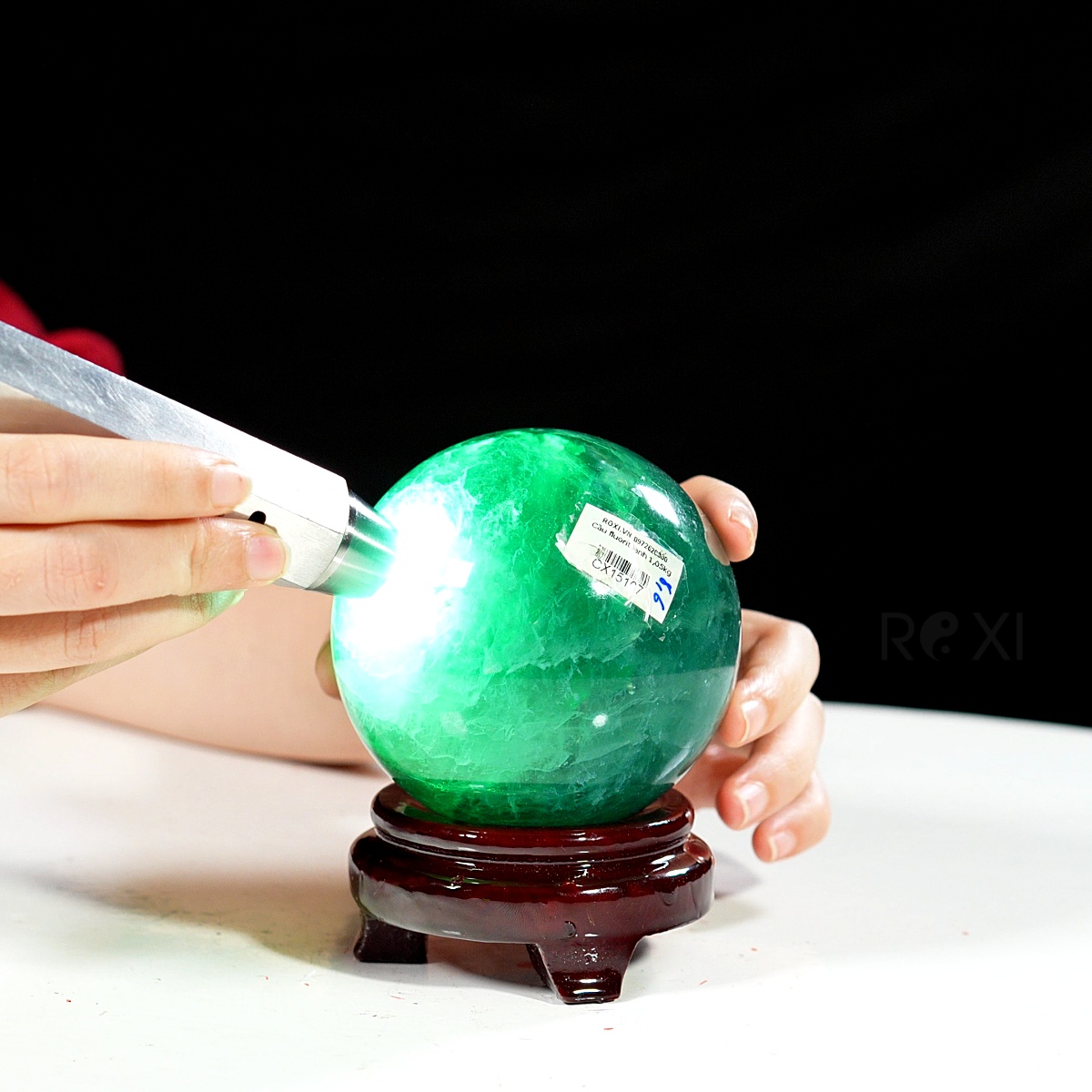 Quả cầu fluorit xanh ngọc 1,05kg - 8,6cm