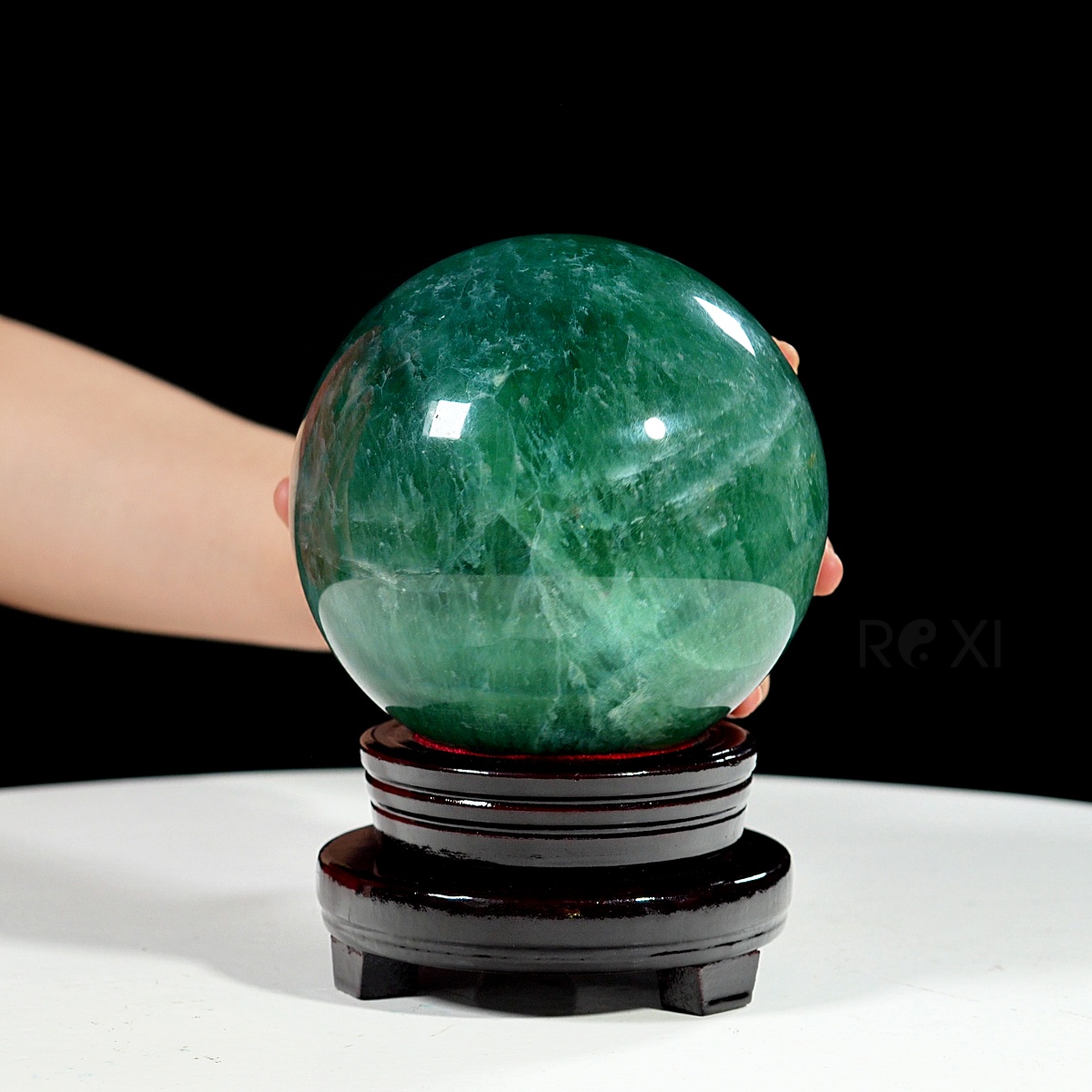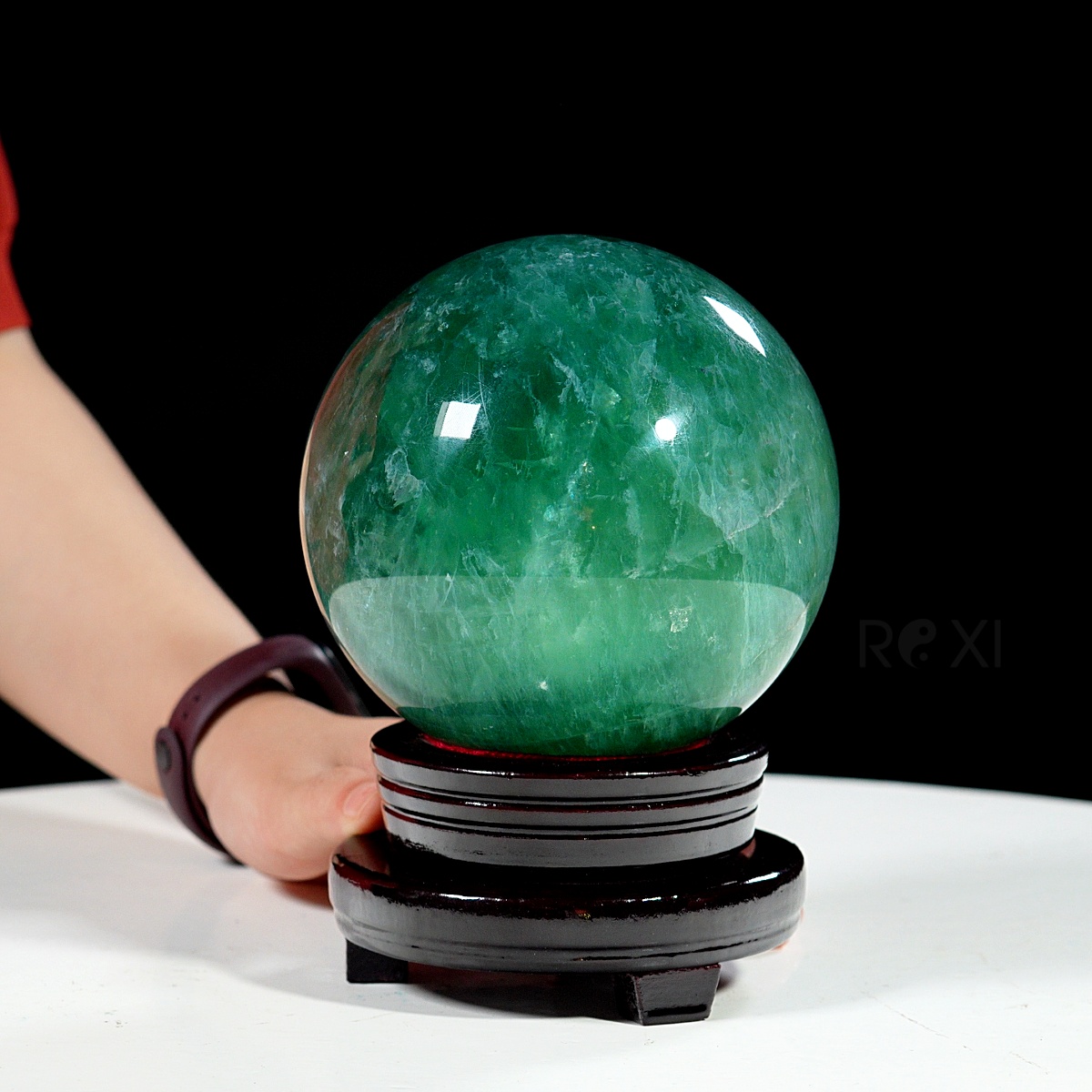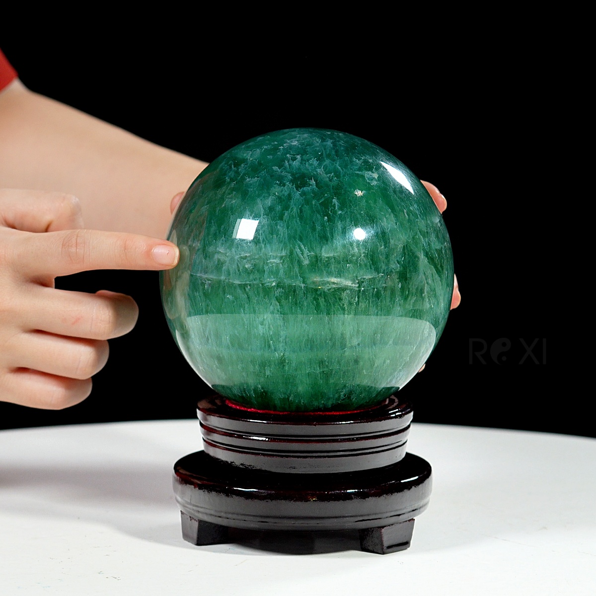 Quả cầu phong thủy màu ngọc được chế tác từ đá fluorit xanh tự nhiên là vật phẩm phong thủy thu tài vượng lộc cho gia chủ, quả cầu được chọn là quà tặng phong thủy đẹp và ý nghĩa.