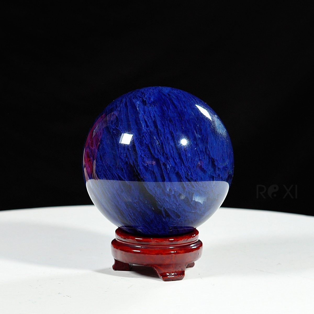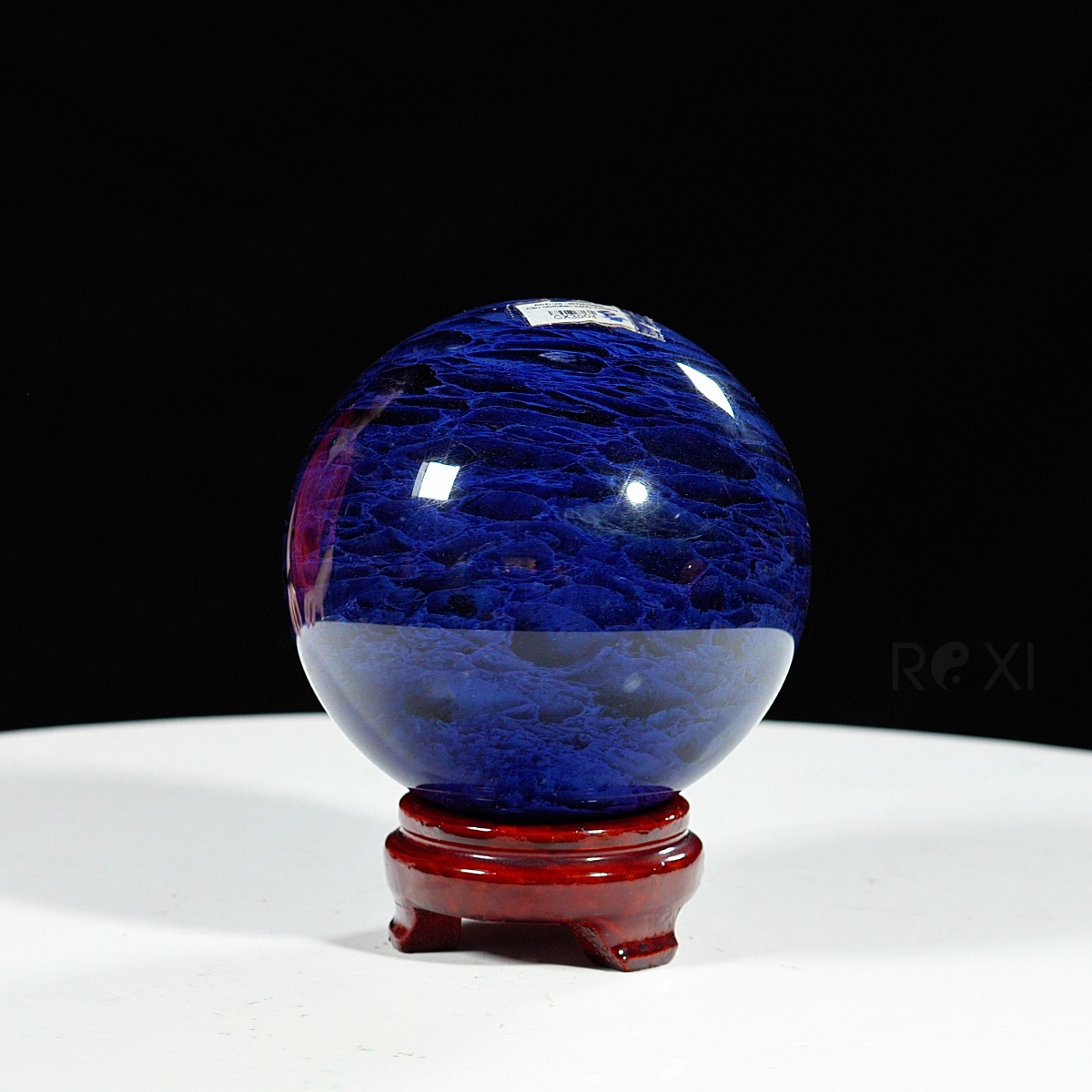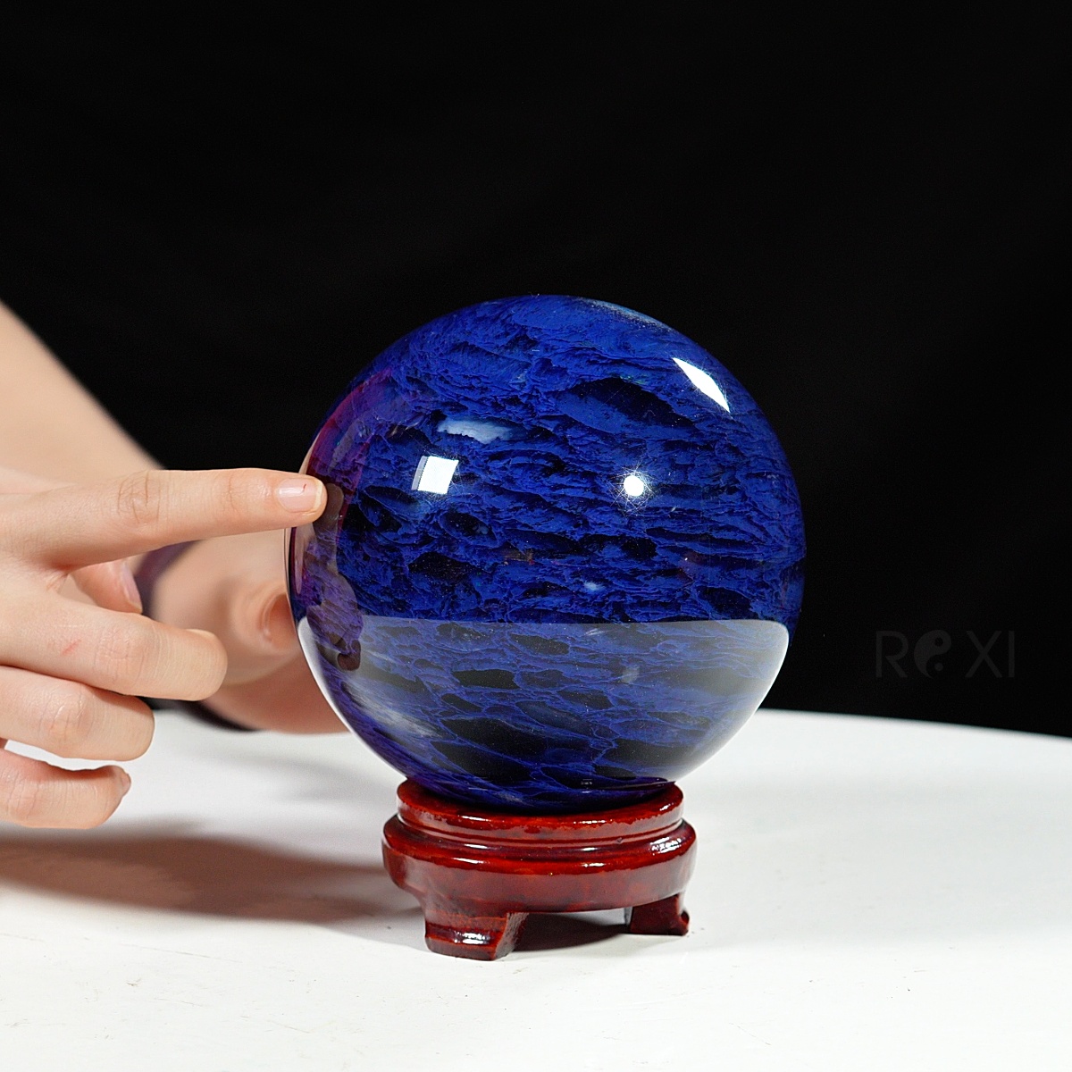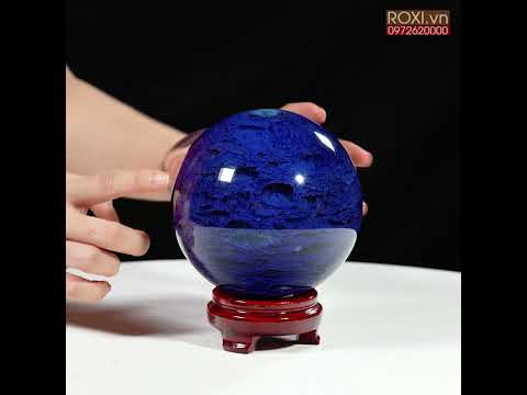 Quả cầu đá màu xanh biển mang sắc xanh sâu thẳm như đại dương. Màu xanh của đá gợi cảm giác bình yên, trí tuệ và sự thông tuệ nội tâm. Bề mặt cầu được mài nhẵn bóng, năng lượng dương mạnh mẽ lan tỏa đều ra xung quanh – biểu tượng cho sự viên mãn, trọn vẹn và hanh thông trong mọi phương diện cuộc sống.