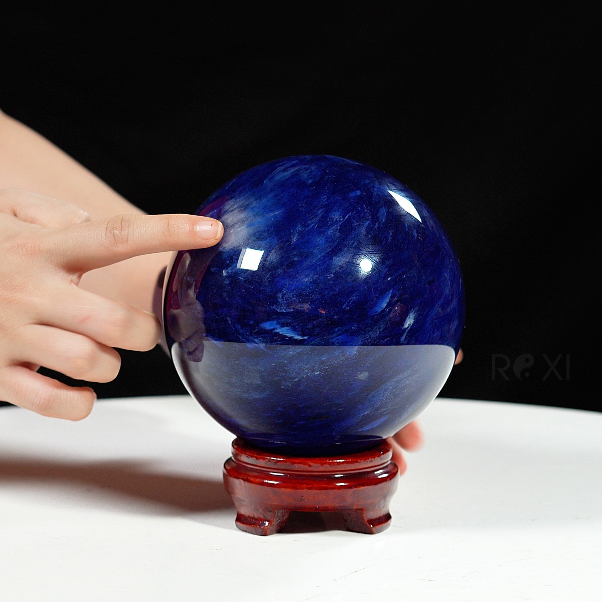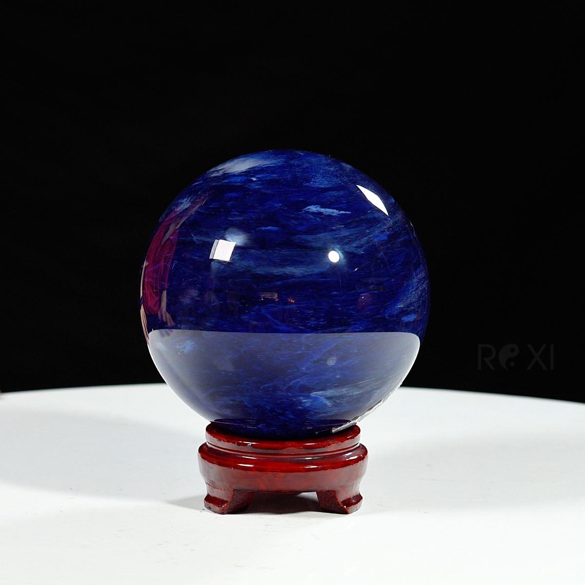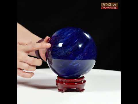 Quả cầu đá màu xanh biển mang sắc xanh sâu thẳm như đại dương. Màu xanh của đá gợi cảm giác bình yên, trí tuệ và sự thông tuệ nội tâm. Bề mặt cầu được mài nhẵn bóng, năng lượng dương mạnh mẽ lan tỏa đều ra xung quanh – biểu tượng cho sự viên mãn, trọn vẹn và hanh thông trong mọi phương diện cuộc sống.