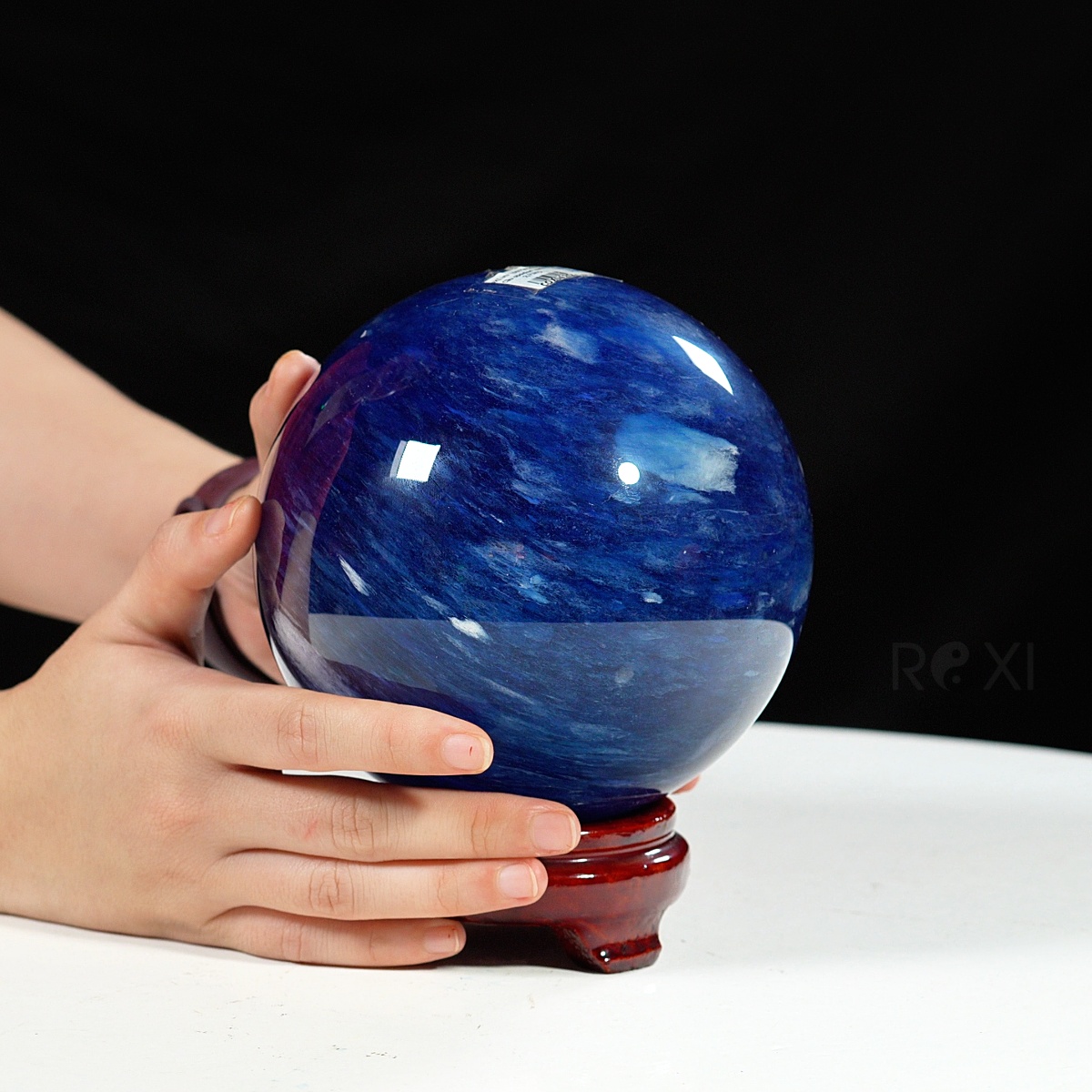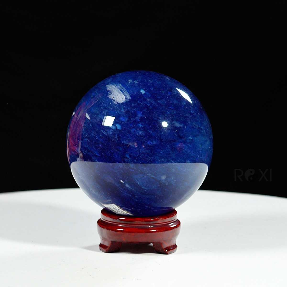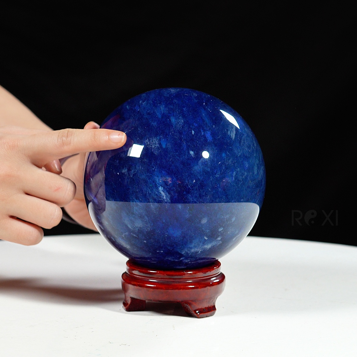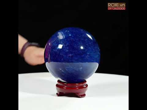 Quả cầu đá màu xanh biển mang sắc xanh sâu thẳm như đại dương. Màu xanh của đá gợi cảm giác bình yên, trí tuệ và sự thông tuệ nội tâm. Bề mặt cầu được mài nhẵn bóng, năng lượng dương mạnh mẽ lan tỏa đều ra xung quanh – biểu tượng cho sự viên mãn, trọn vẹn và hanh thông trong mọi phương diện cuộc sống.