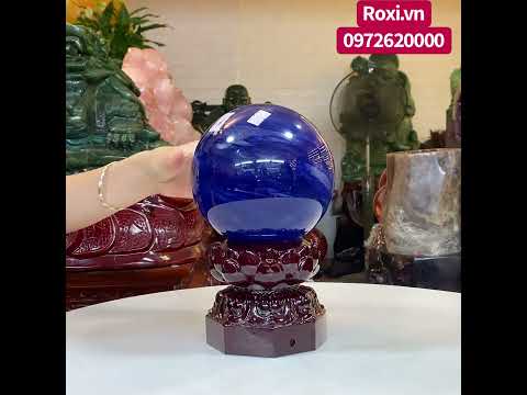 Quả cầu màu xanh biển obsidian 2,9kg - 13,6cm + đế gỗ hoa sen