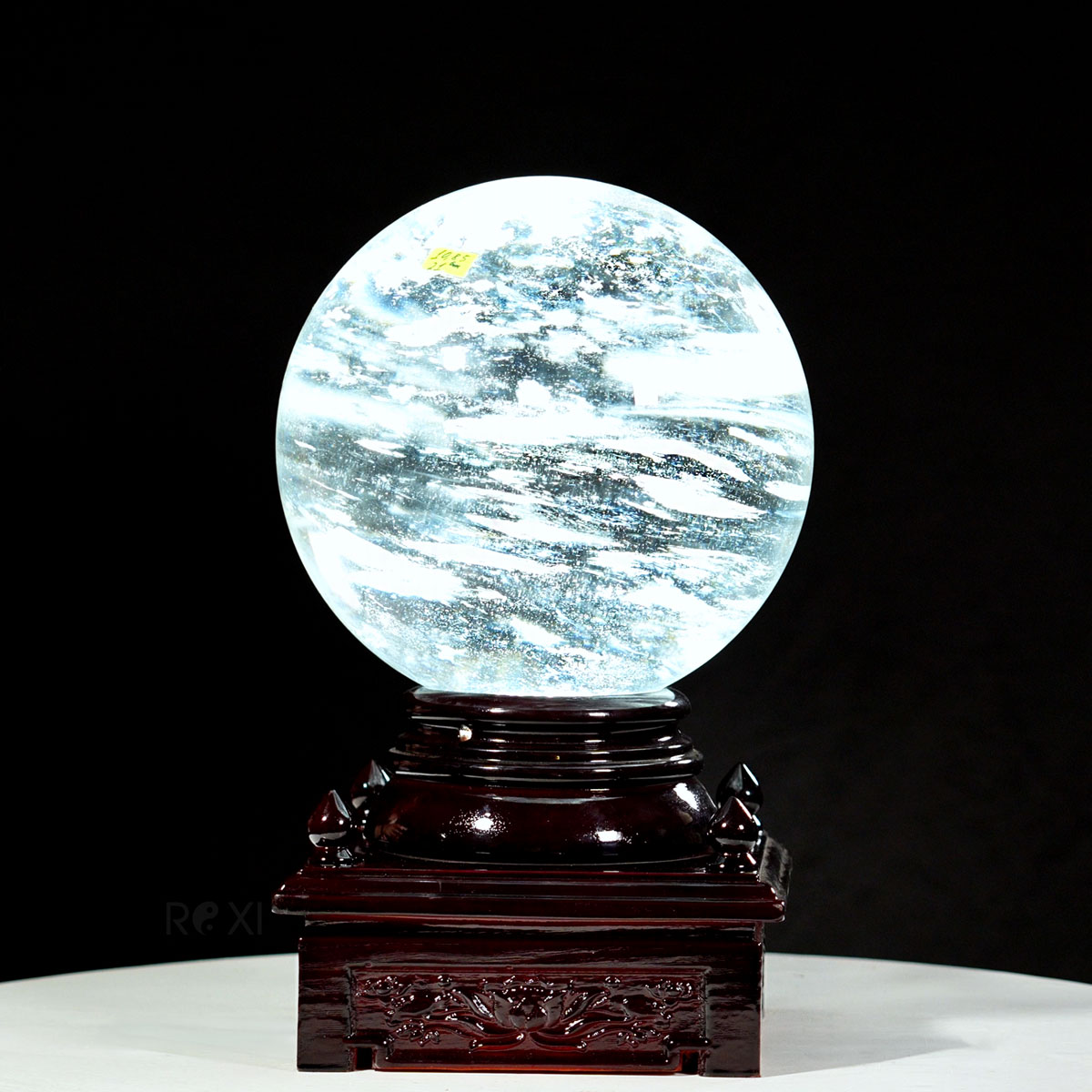 Quả cầu obsidian trắng 10,85kg - 21cm + đế đèn