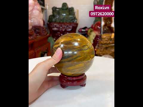 - Quả cầu đá mắt hổ nâu vàng hợp mệnh Thổ, Kim.