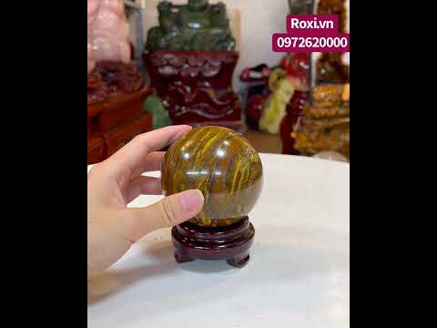 - Quả cầu đá mắt hổ nâu vàng hợp mệnh Thổ, Kim.