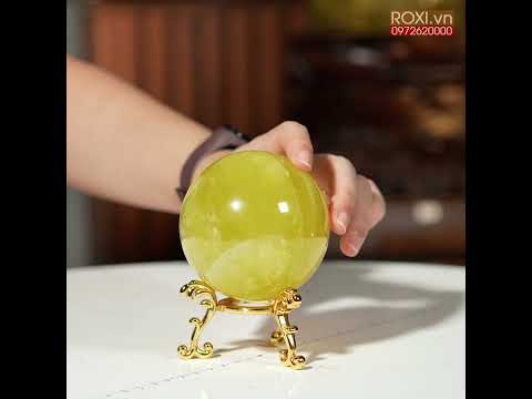 Quả cầu thạch anh vàng được chế tác từ đá thạch anh tự nhiên, mang sắc vàng rực rỡ tượng trưng cho tài lộc và thịnh vượng.