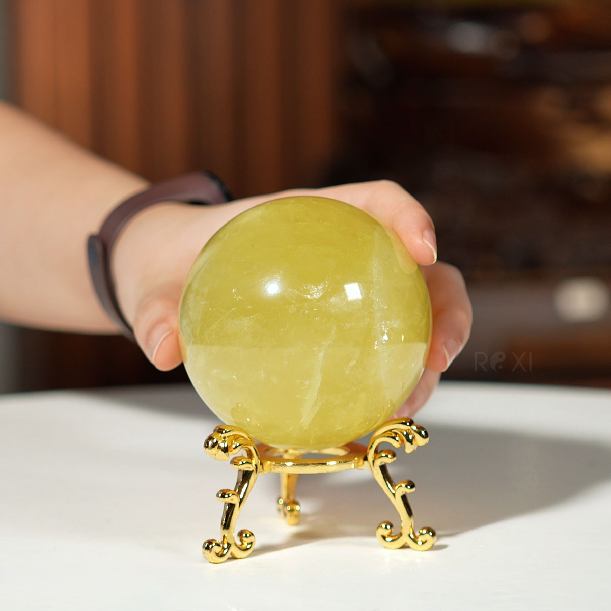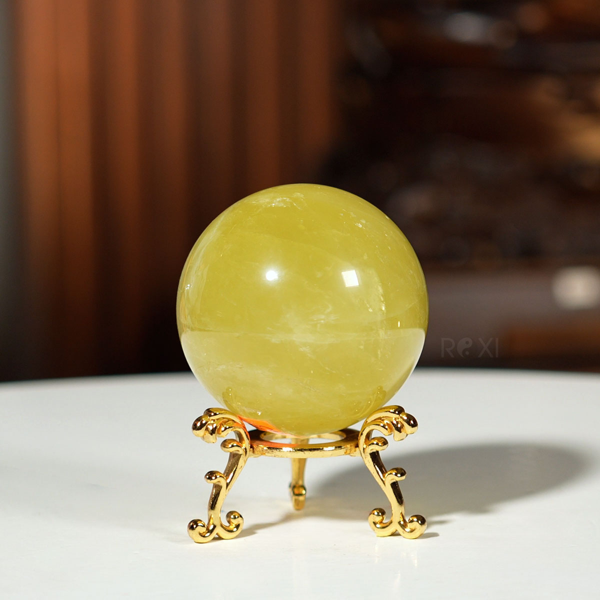 • Tính chất: Đá thạch anh vàng, hay còn gọi là Citrine Quartz, là loại đá quý tự nhiên, có độ cứng 7/10 trên thang Mohs. Đặc tính này giúp quả cầu có độ bền cao, chống trầy xước và giữ được vẻ đẹp bền bỉ theo thời gian.