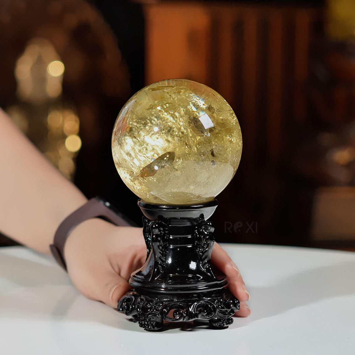 - Kích hoạt tài lộc và thịnh vượng: Quả cầu thạch anh vàng là biểu tượng thu hút tiền tài, của cải. Năng lượng từ quả cầu giúp gia chủ gặp nhiều may mắn trong kinh doanh, thăng tiến trong sự nghiệp.