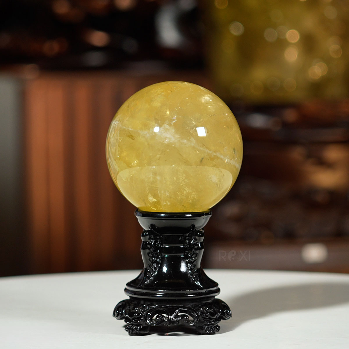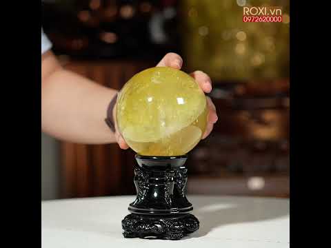 Quả cầu thạch anh vàng được chế tác từ đá thạch anh tự nhiên, mang sắc vàng rực rỡ tượng trưng cho tài lộc và thịnh vượng.