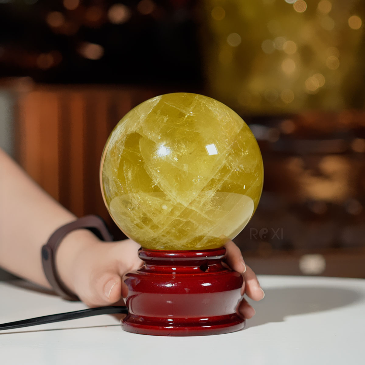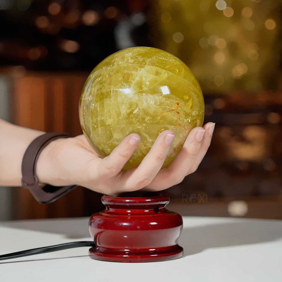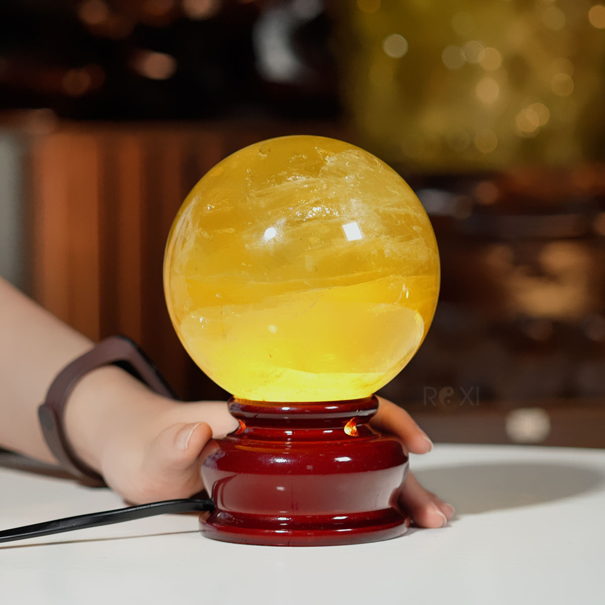 • Tính chất: Đá thạch anh vàng, hay còn gọi là Citrine Quartz, là loại đá quý tự nhiên, có độ cứng 7/10 trên thang Mohs. Đặc tính này giúp quả cầu có độ bền cao, chống trầy xước và giữ được vẻ đẹp bền bỉ theo thời gian.