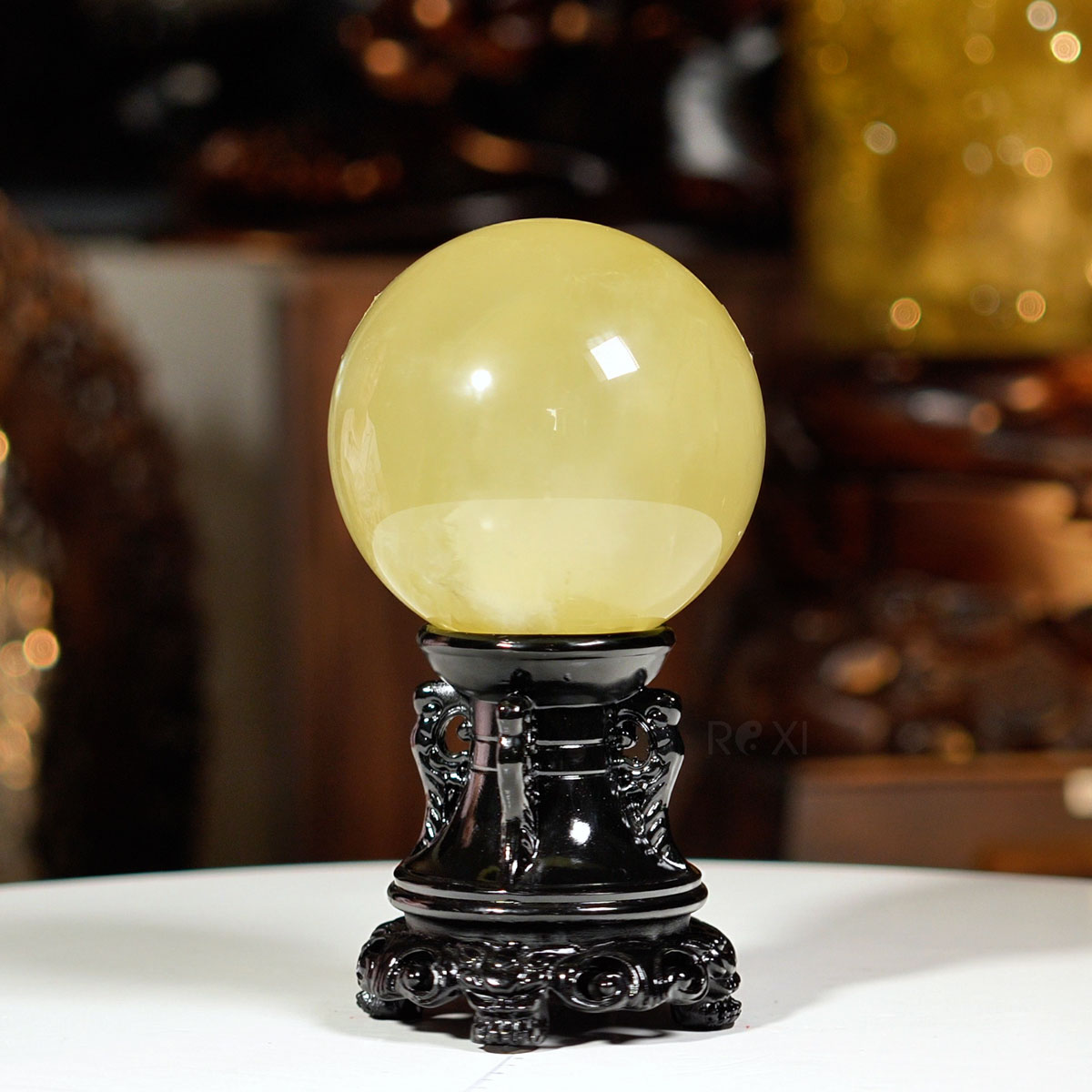 • Tính chất: Đá thạch anh vàng, hay còn gọi là Citrine Quartz, là loại đá quý tự nhiên, có độ cứng 7/10 trên thang Mohs. Đặc tính này giúp quả cầu có độ bền cao, chống trầy xước và giữ được vẻ đẹp bền bỉ theo thời gian.
