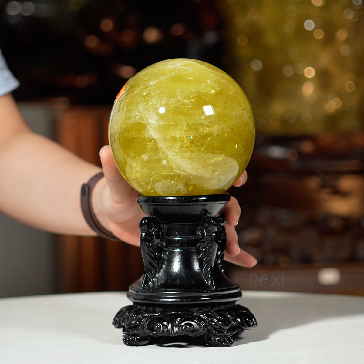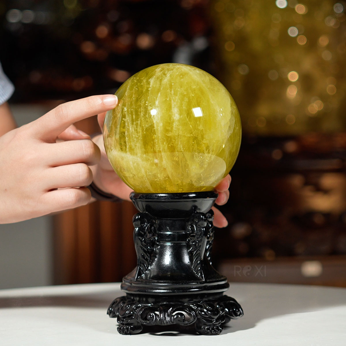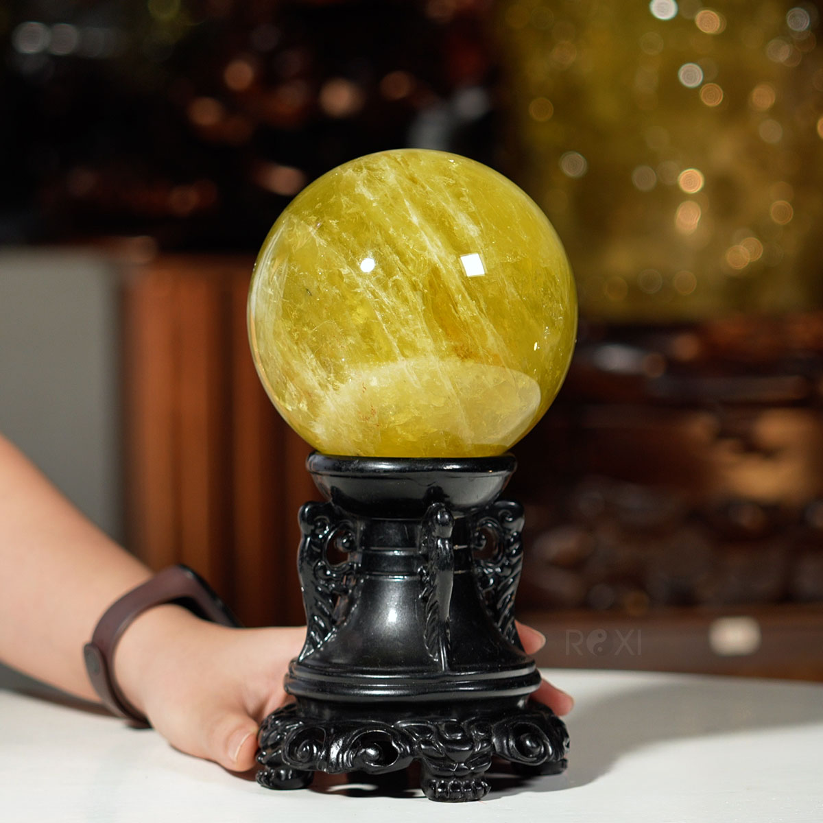 • Tính chất: Đá thạch anh vàng, hay còn gọi là Citrine Quartz, là loại đá quý tự nhiên, có độ cứng 7/10 trên thang Mohs. Đặc tính này giúp quả cầu có độ bền cao, chống trầy xước và giữ được vẻ đẹp bền bỉ theo thời gian.