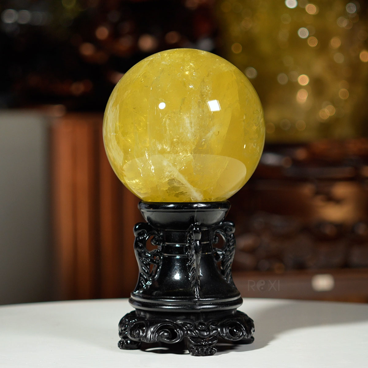 Quả cầu thạch anh vàng được chế tác từ đá thạch anh tự nhiên, mang sắc vàng rực rỡ tượng trưng cho tài lộc và thịnh vượng.