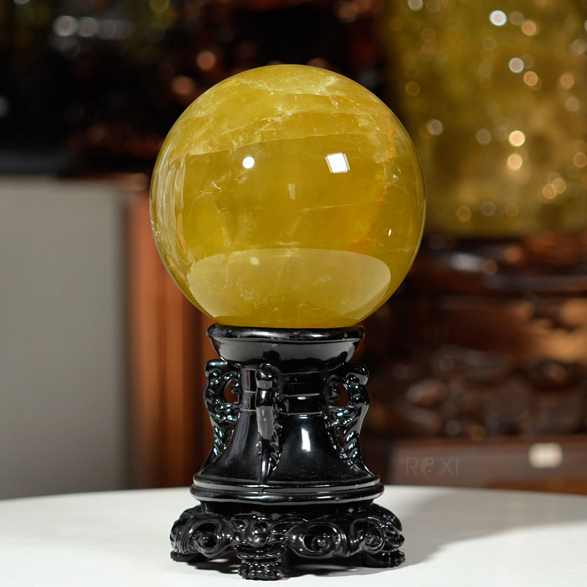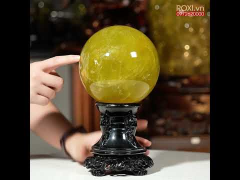 Quả cầu thạch anh vàng được chế tác từ đá thạch anh tự nhiên, mang sắc vàng rực rỡ tượng trưng cho tài lộc và thịnh vượng.