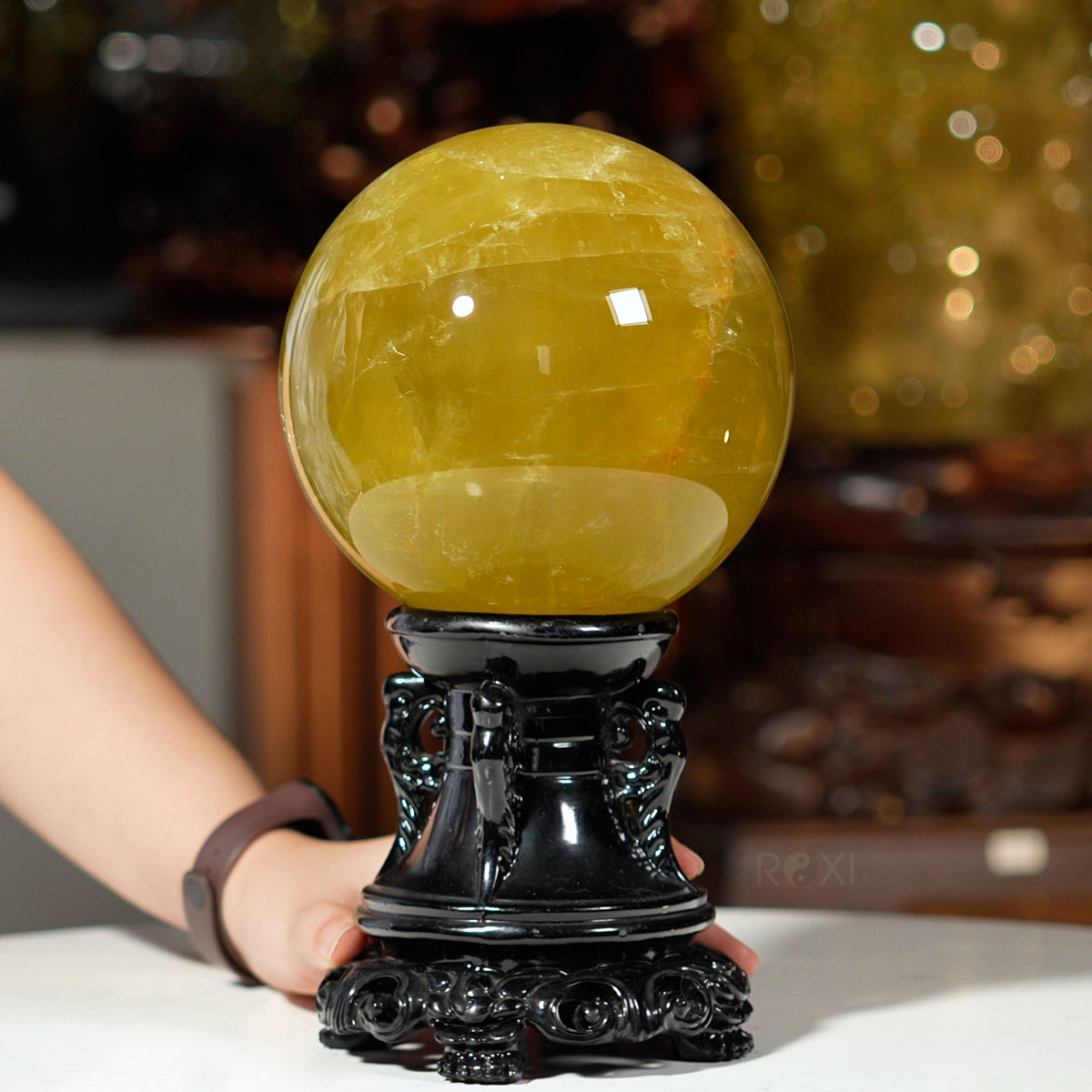 • Tính chất: Đá thạch anh vàng, hay còn gọi là Citrine Quartz, là loại đá quý tự nhiên, có độ cứng 7/10 trên thang Mohs. Đặc tính này giúp quả cầu có độ bền cao, chống trầy xước và giữ được vẻ đẹp bền bỉ theo thời gian.