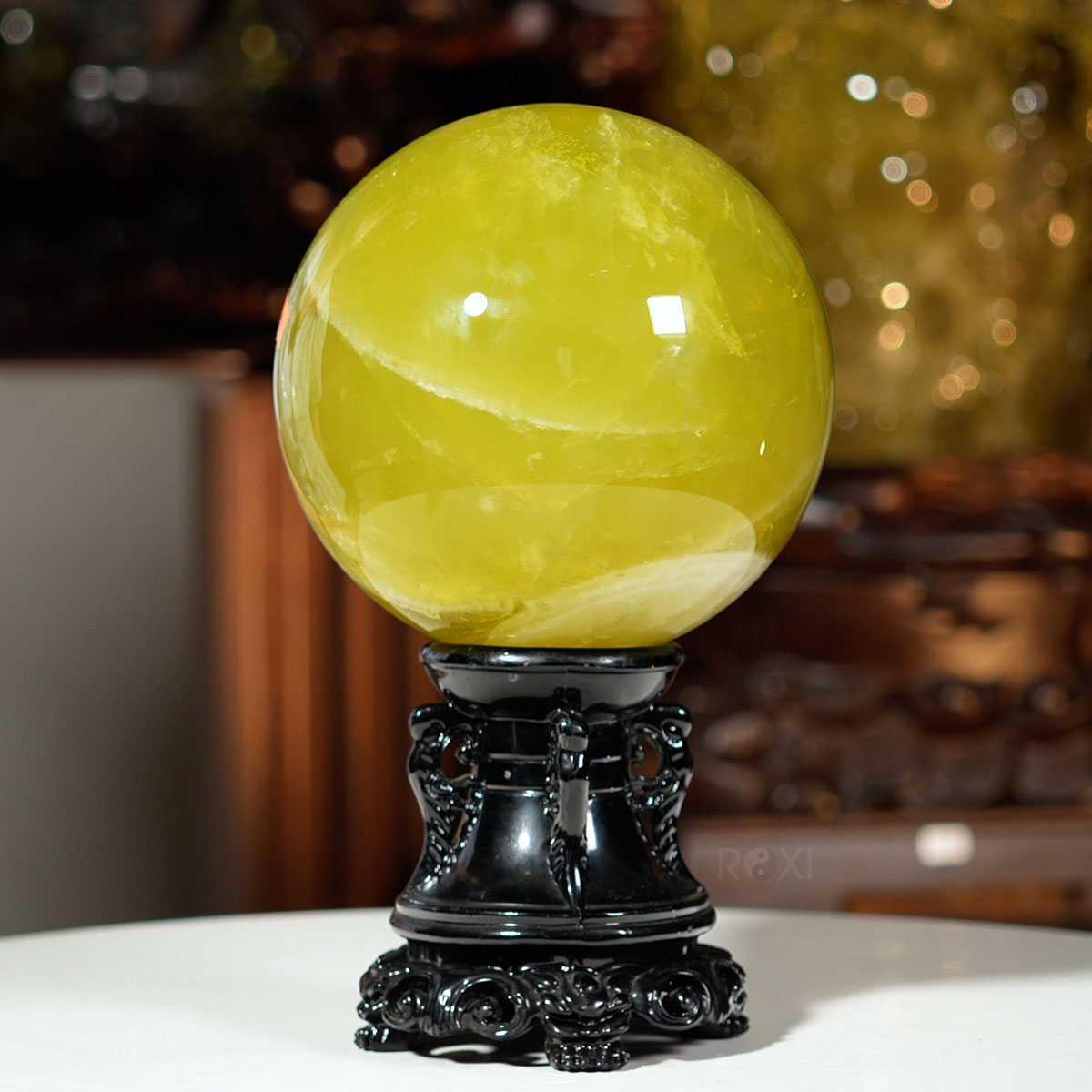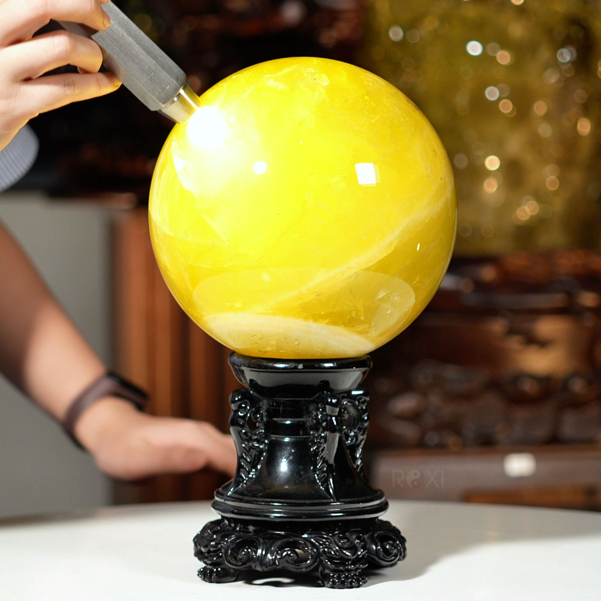 - Tính chất: Đá thạch anh vàng, hay còn gọi là Citrine Quartz, là loại đá quý tự nhiên, có độ cứng 7/10 trên thang Mohs. Đặc tính này giúp quả cầu có độ bền cao, chống trầy xước và giữ được vẻ đẹp bền bỉ theo thời gian.