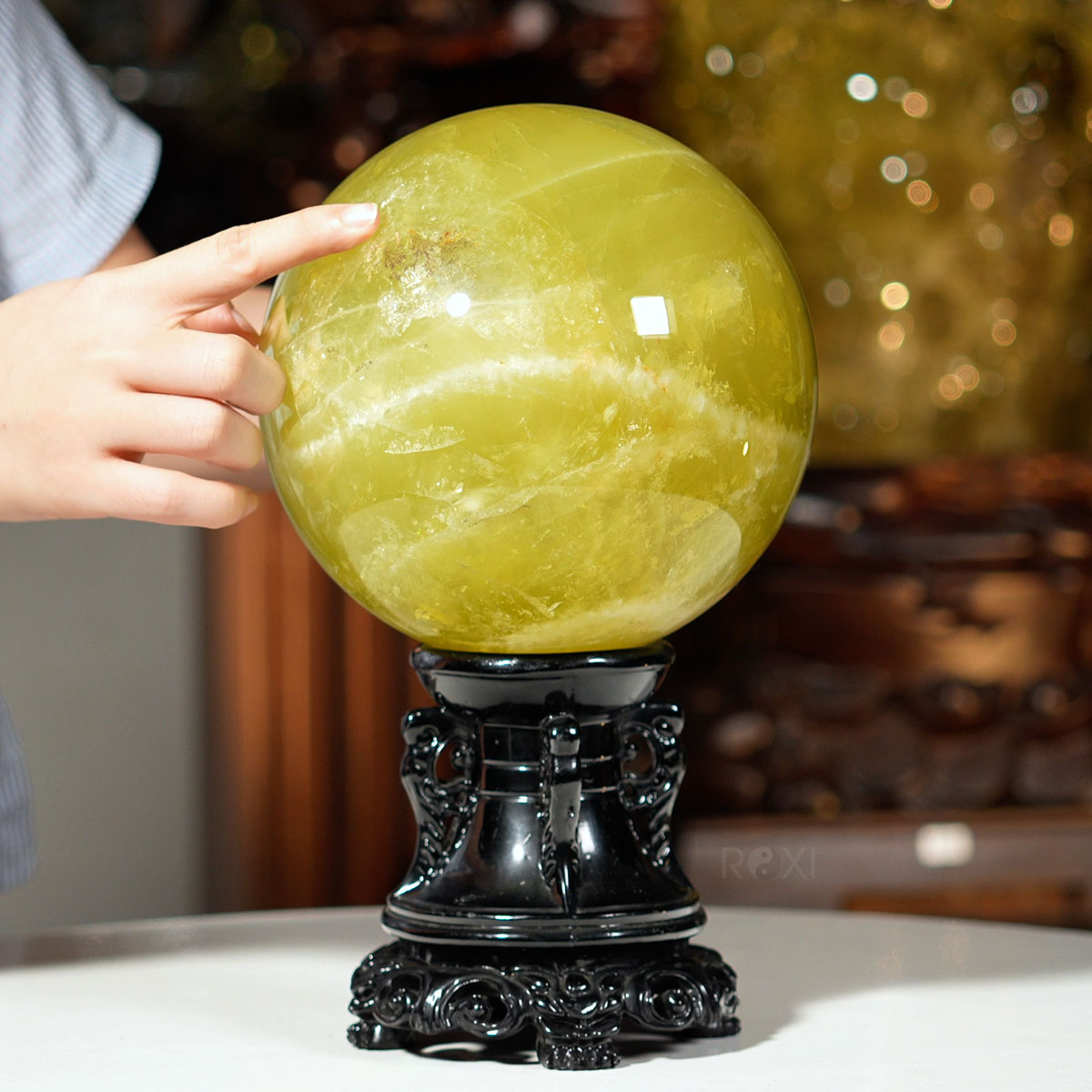 - Kích hoạt tài lộc và thịnh vượng: Quả cầu thạch anh vàng là biểu tượng thu hút tiền tài, của cải. Năng lượng từ quả cầu giúp gia chủ gặp nhiều may mắn trong kinh doanh, thăng tiến trong sự nghiệp.