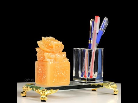 Sự kết hợp giữa Ấn rồng ngọc hoàng long và ống bút phale cao cấp là món quà tặng vừa mang giá trị phong thủy đồng thời là vật phẩm decor trang trí bàn làm việc đẹp và đẳng cấp. Điểm nhấn của set quà tặng này chiếc ấn rồng được chế tác từ ngọc hoàng long tự nhiên hình thành hàng trăm triệu năm trong lòng đất, mang trường năng lượng dương, mang tới những vượng khí cát khí hỗ trợ cho bản mệnh.